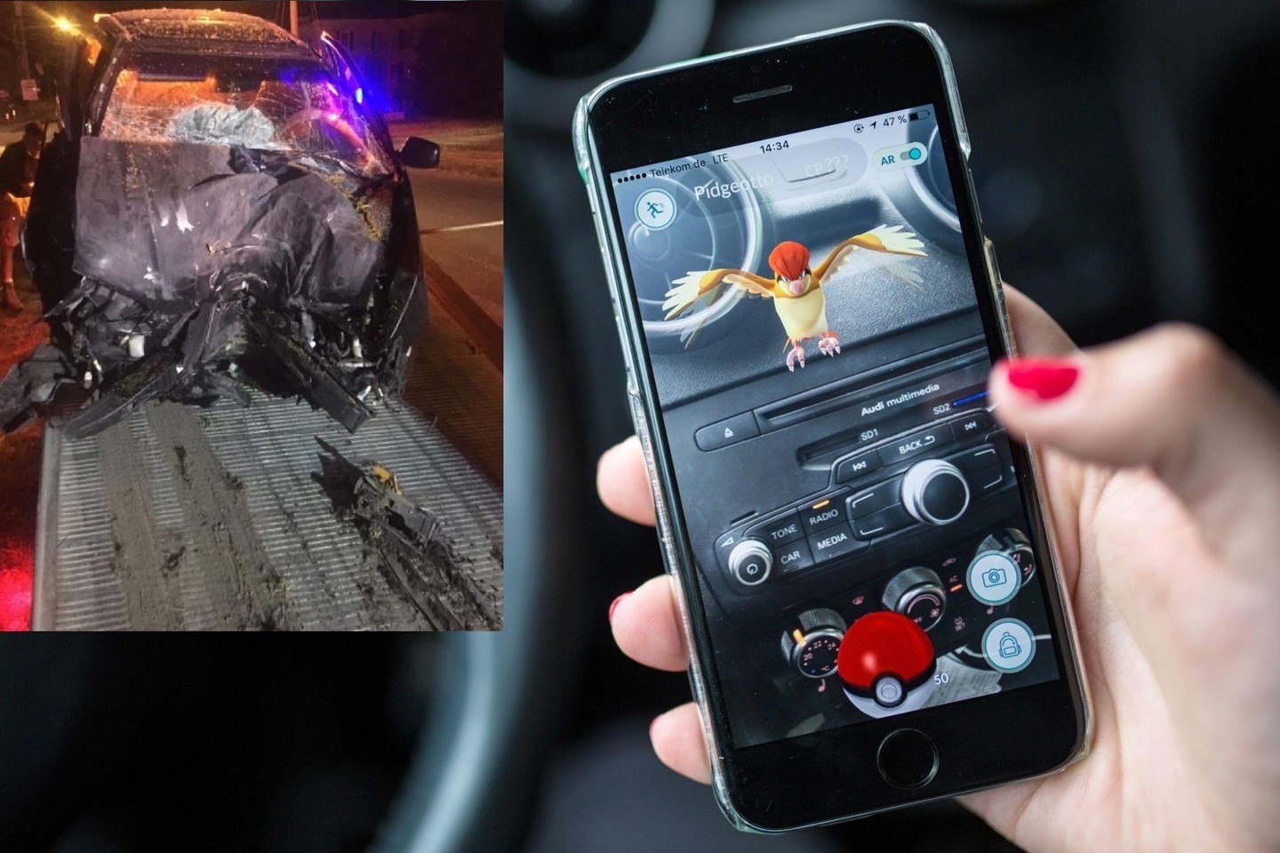 Po šios kurioziškos avarijos vietos policija prašo žaidžiant vadovautis sveiku protu.