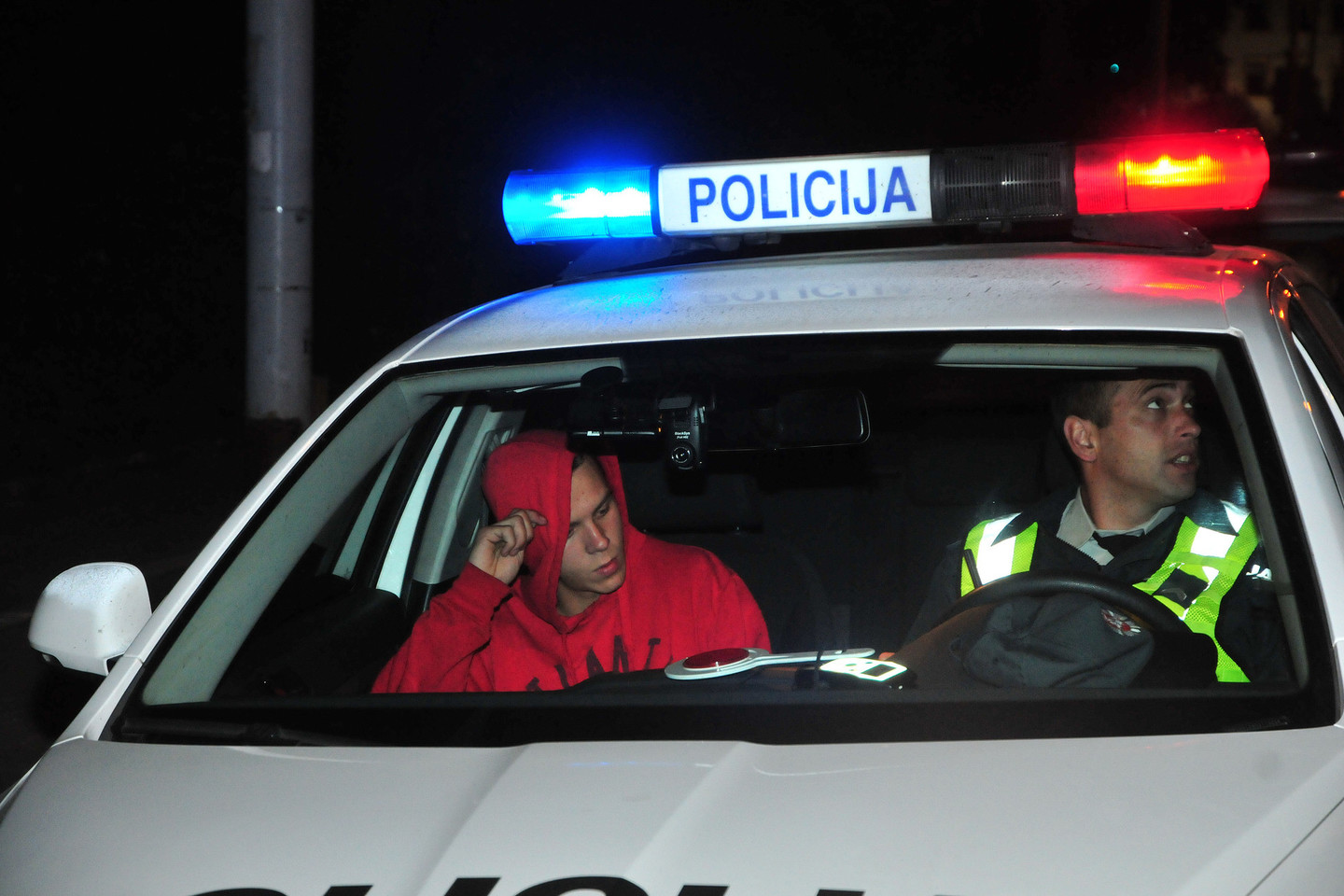 Vyriškį įsodinus į policijos automobilį ir pradėjus rašyti jam protokolą, problemų ieškotis pradėjo kartu važiavęs keleivis.