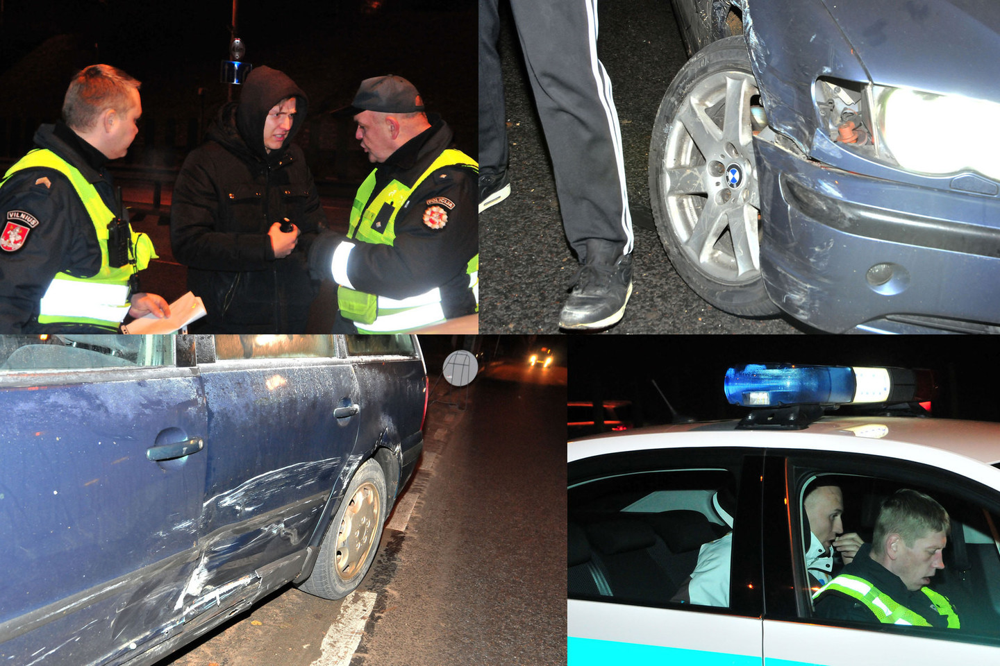 Reidui persikėlus į Geležinio Vilko gatvę ties Vingio parku, pažeidėjai į pareigūnų rankas pradėjo važiuoti vienas po kito. Ir pirmasis pareigūnams čia įkliuvo neblaivus BMW vairuotojas. Automobilius stabdančių pareigūnų akivaizdoje jaunuolis sugebėjo įsirėžti ties reido vieta pristabdžiusį žalialapį „Volkswagen Passat“.