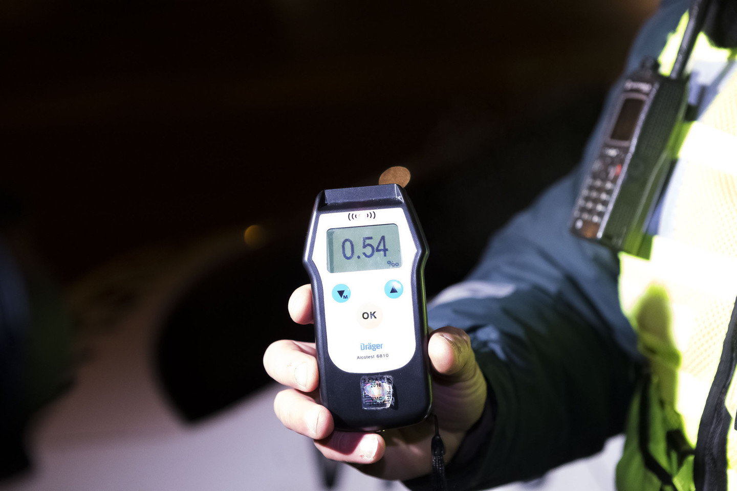 Pajutę nuo vairuotojo sklindantį alkoholio kvapą, pareigūnai paprašė jo papūsti į alkotesterį. Kurį laiką delsęs vyras vėliau vis dėlto pūstelėjo. Ir pripūtė 0,54 prom.
