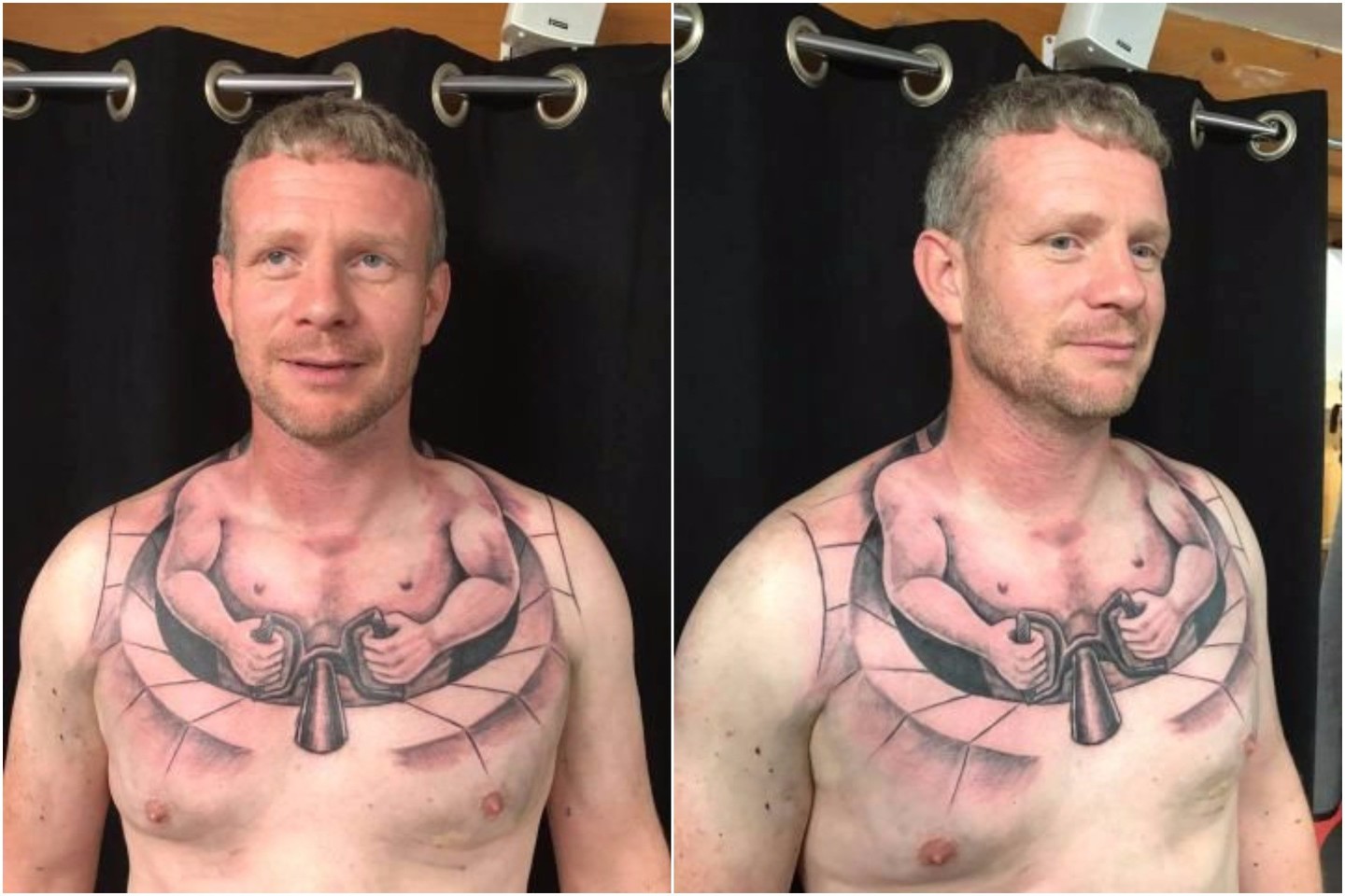 Žiūrėdamas į veidrodį jis pats stebisi tuo, ką padarė. Vyras juokavo, kad jam judinant krūtinės raumenis vaizdas būna tiesiog neįtikėtinas.