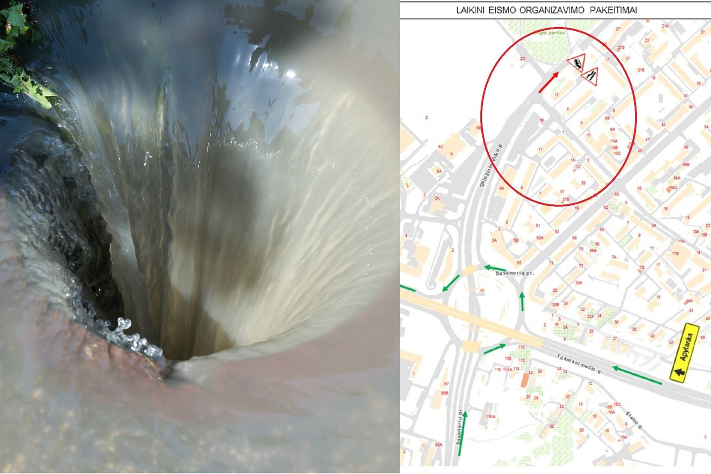 Aptvėrimo zoną rekomenduojama apvažiuoti Laisvės prospektu ir T. Narbuto gatve, nes remonto vietoje Geležinio vilko gatvė yra labai aktyvi, ten gali susidaryti spūsčių.