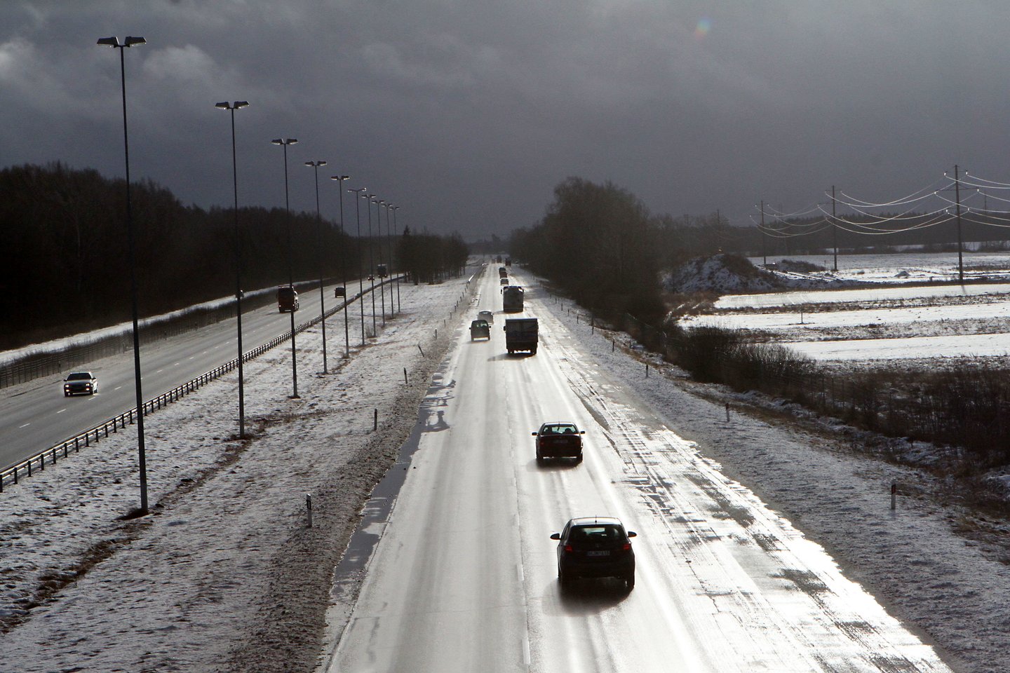 Tačiau rytiniuose rajonuose mažesnio eismo intensyvumo rajoniniai keliai yra padengti prispausto arba pažliugusio sniego sluoksniu, provėžoti bei slidūs. Čia dirba kelių priežiūros mechanizmai.