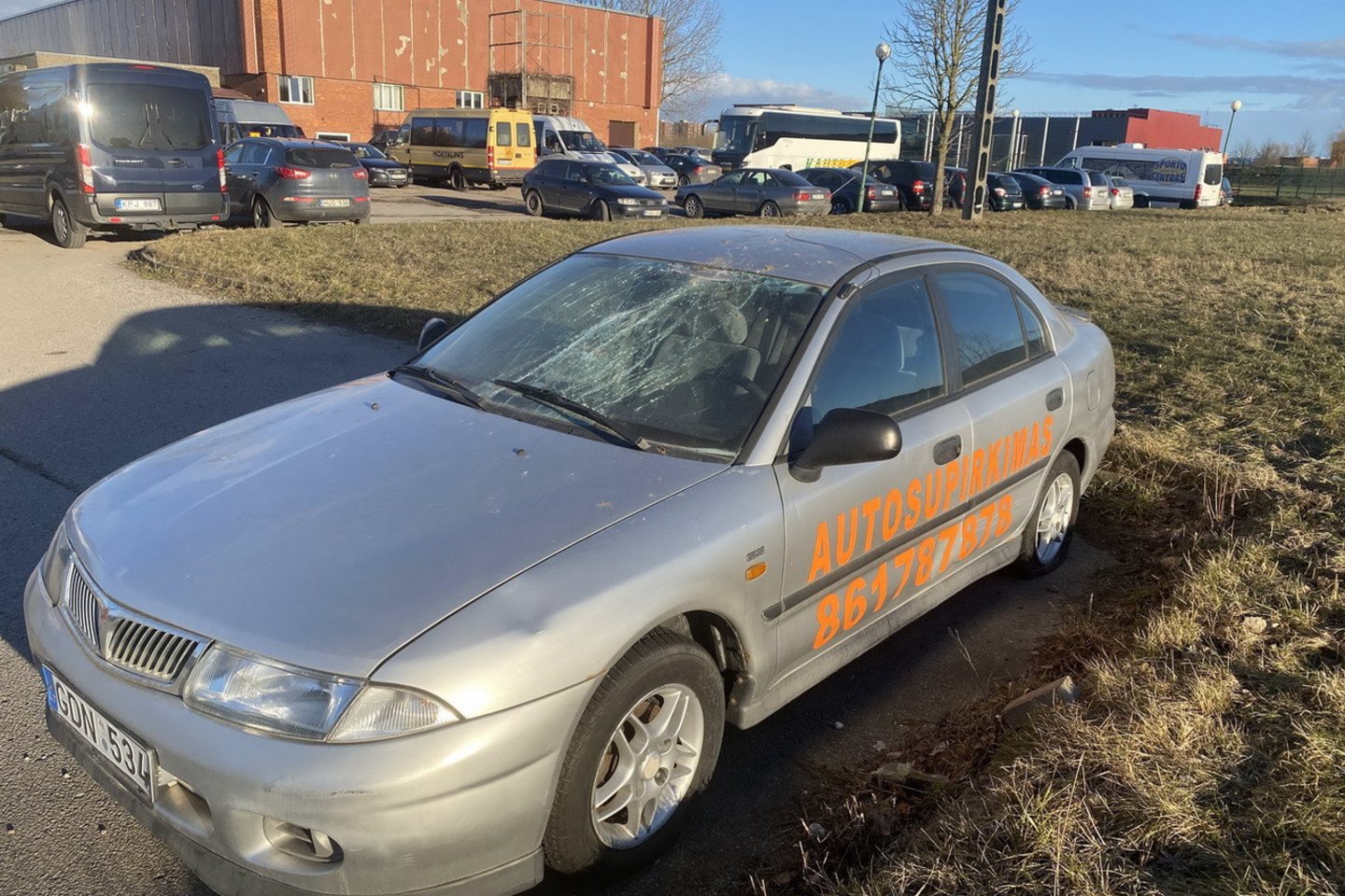 VE.lt žurnalistai anksčiau buvo užfiksavę apdaužytą reklaminiais užrašais išmargintą automobilį prie Klaipėdos lengvosios atletikos mokyklos. Po apdaužymo jis dar kurį laiką stovėjo, tačiau vėliau buvo išgabentas ir dabar jau nebebado akių.