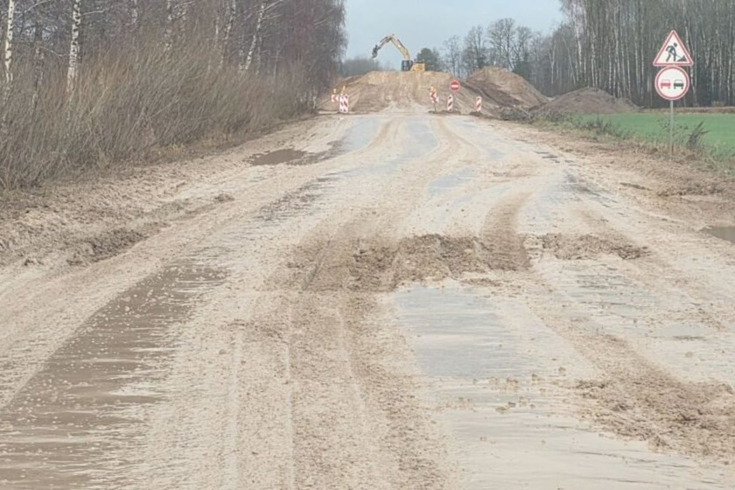 Žiemos laikotarpiu, o žiemą turime tokią, kokią turime, esant nepalankioms oro sąlygoms, dažnai lyjant lietui ir esant intensyviam krovinių automobilių eismui tiek likusio kelio Pagiriai–Vaiškoniai atkarpos, tiek laikinai įrengto kelio būklė gerokai suprastėjusi.