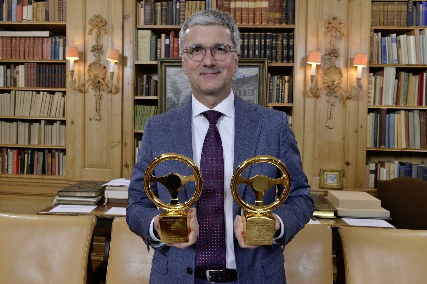 „Audi AG“ valdybos pirmininkas Rupertas Stadleris atsiėmė A4 ir R8 modeliams skirtus apdovanojimus.