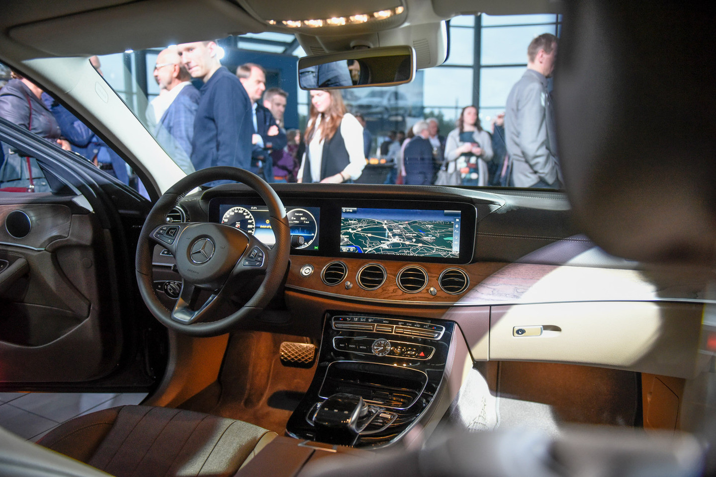 Inžinieriai skyrė dar daugiau dėmesio E klasės viduje esančiai komforto įrangai. Automobilio salone galima įmontuoti net du 12,3 colio skersmens ekranus, o ant vairo esančiais lietumui jautriais paviršiais (kurie pakeitė dalį valdymo mygtukų) galima bus valdyti multimedijos sistemą lyg išmaniuoju telefonu.