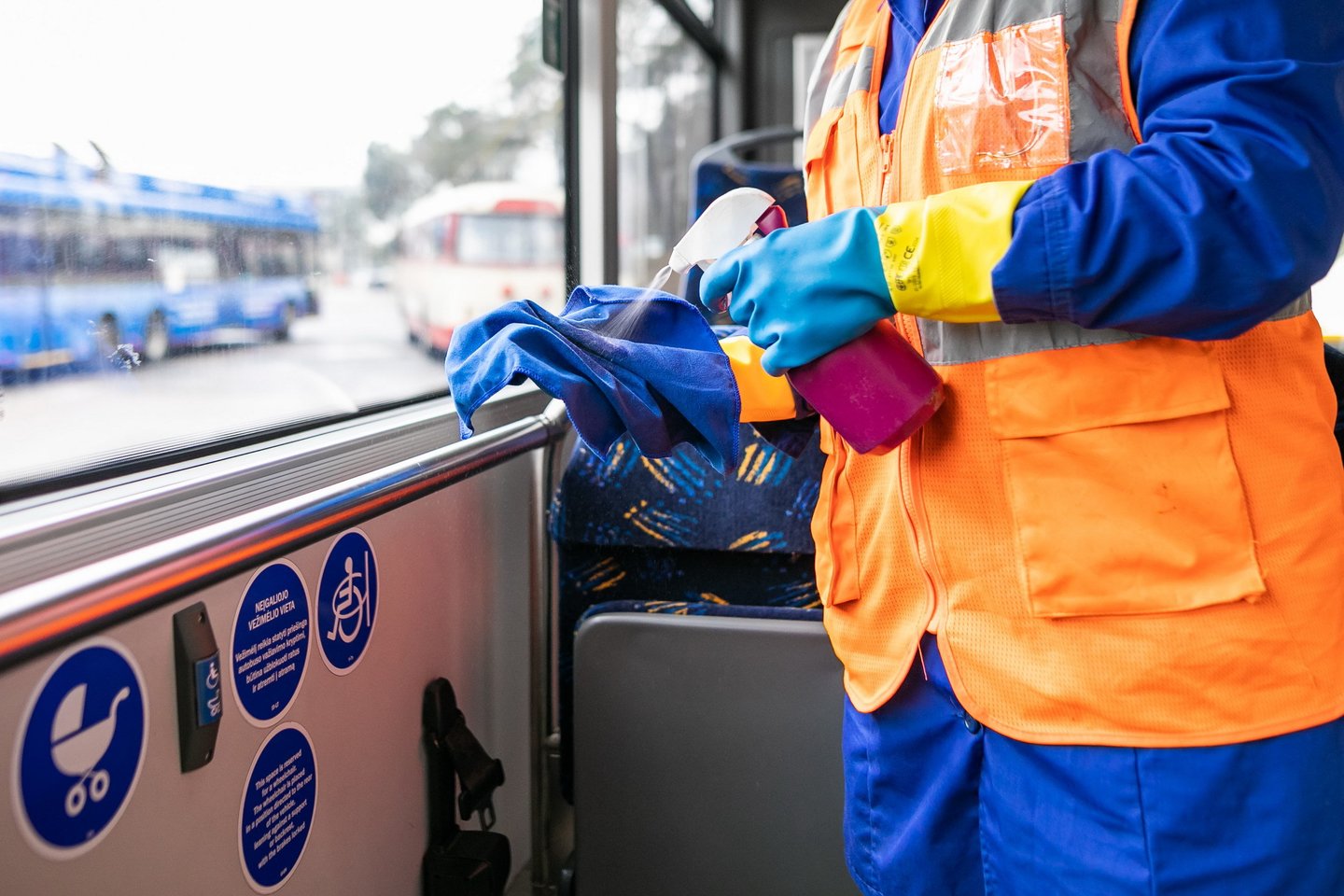 Įprastai autobusai ir troleibusai kasdien būdavo valomi specialiu šarminiu valikliu, kuris turi dezinfekcinių savybių, bet šiuo laikotarpiu jau nuo vasario pabaigos pasirinkti dar stipresnio dezinfekcinio poveikio valikliai, kurie naudojami ir medicinos įstaigose.