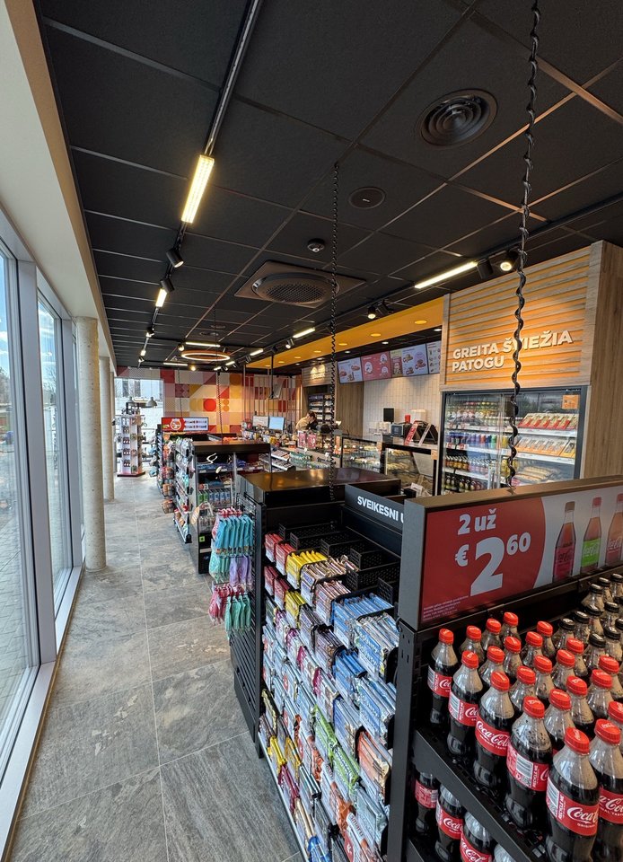 Atnaujintos degalinės sklypo plotas siekia 1825 m². Parduotuvės erdvė išsiplėtė trigubai – nuo 45 m² iki 135 m², o viso pastato plotas – 225 m².
