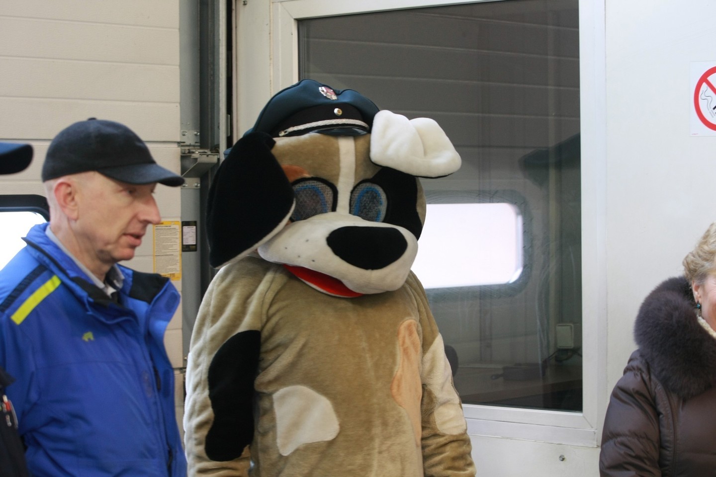Kelių policijos pagalbininko „Amsiaus“ pasitiktiems pradinukams surengta ekskursija po Panevėžio techninės apžiūros stotį.