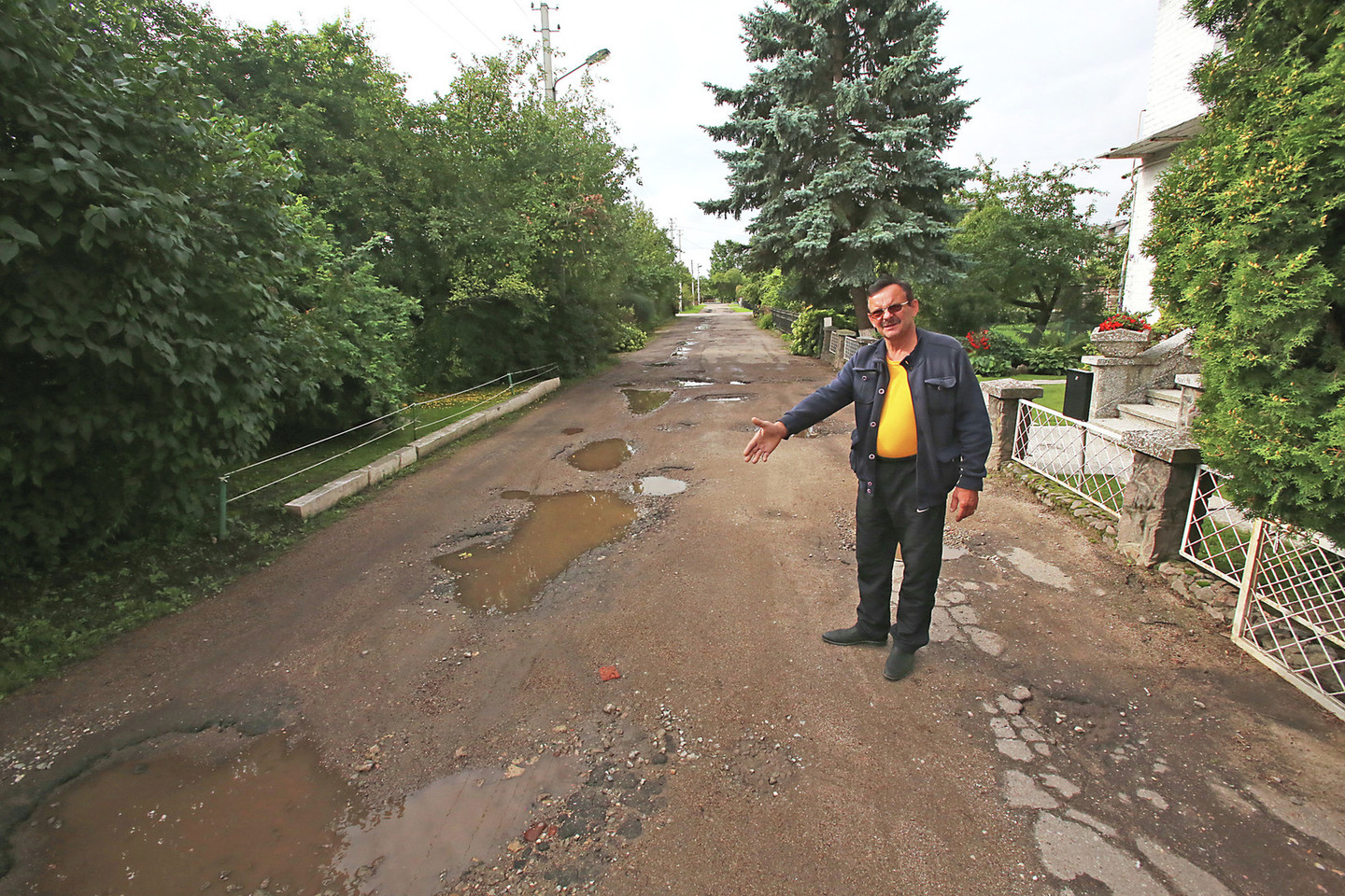„Jeigu nėra galimybės pakloti naujos asfalto dangos, galėtų bent atvežti žvyro ir užlyginti duobes, nes gaila žiūrėti į vaikus“, – kalbėjo G.Sakalauskas.