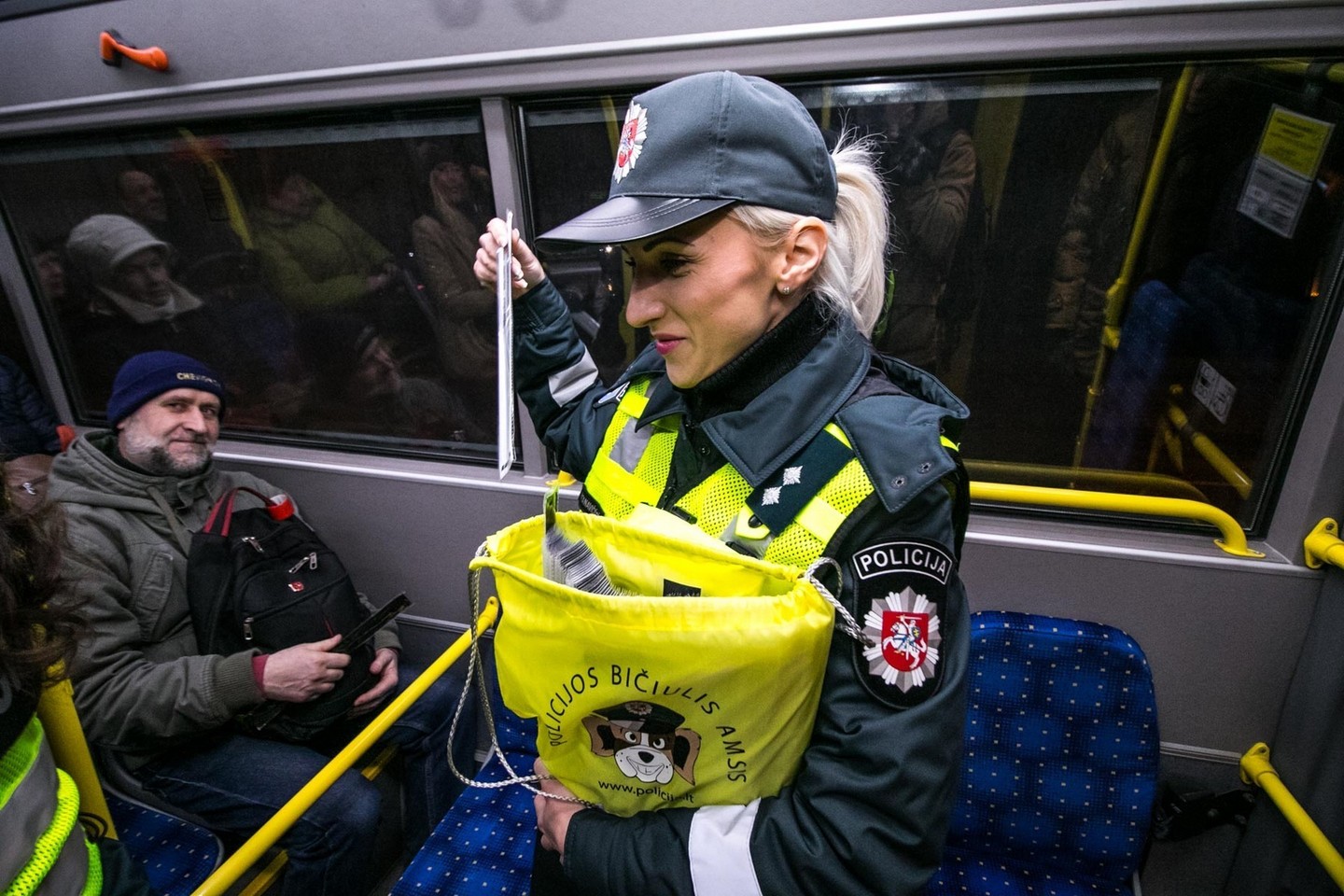 Įteikdami atšvaitus keleiviams pareigūnai priminė, kad tamsiuoju paros metu būtina dėvėti atšvaitus, užsidedant juos ant kairės ir dešinės rankos taip, kad atšvaitas būtų gerai apšviečiamas automobilio žibintų šviesos.