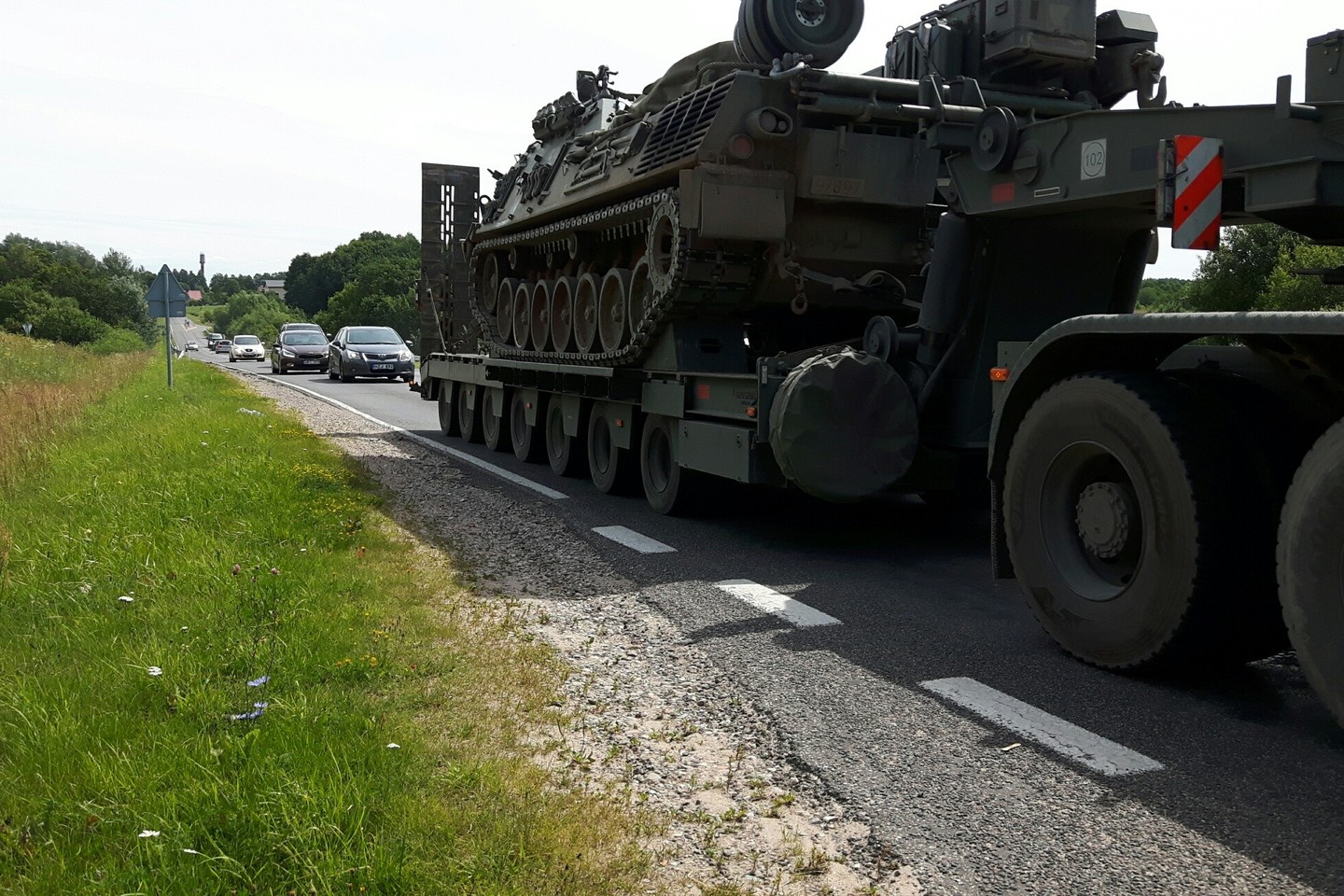 Eismą sutrikdžiusi avarija šeštadienio popietę įvyko netoli Sudervės. Lydimas Karo policijos, keliu iš lėto judėjo vilkikas, kuris vežė šarvuotį.