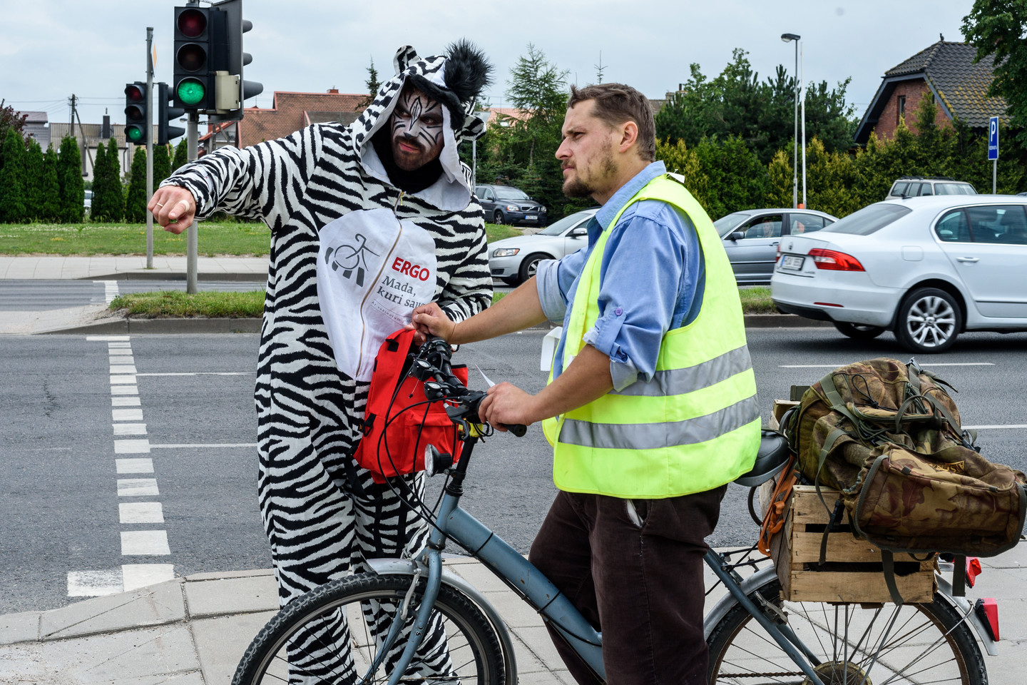 Pavyzdingai dviračius per perėjas persivarę dviratininkai sulaukė akcijos rengėjų padėkos ir paskatinimo toliau važinėti saugiai.