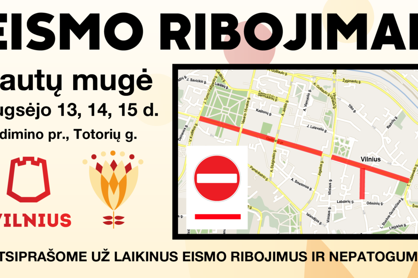 Eismo dalyviai prašomi būti atidūs, laikytis kelių eismo taisyklių ir eismo reguliuotojų nurodymų.