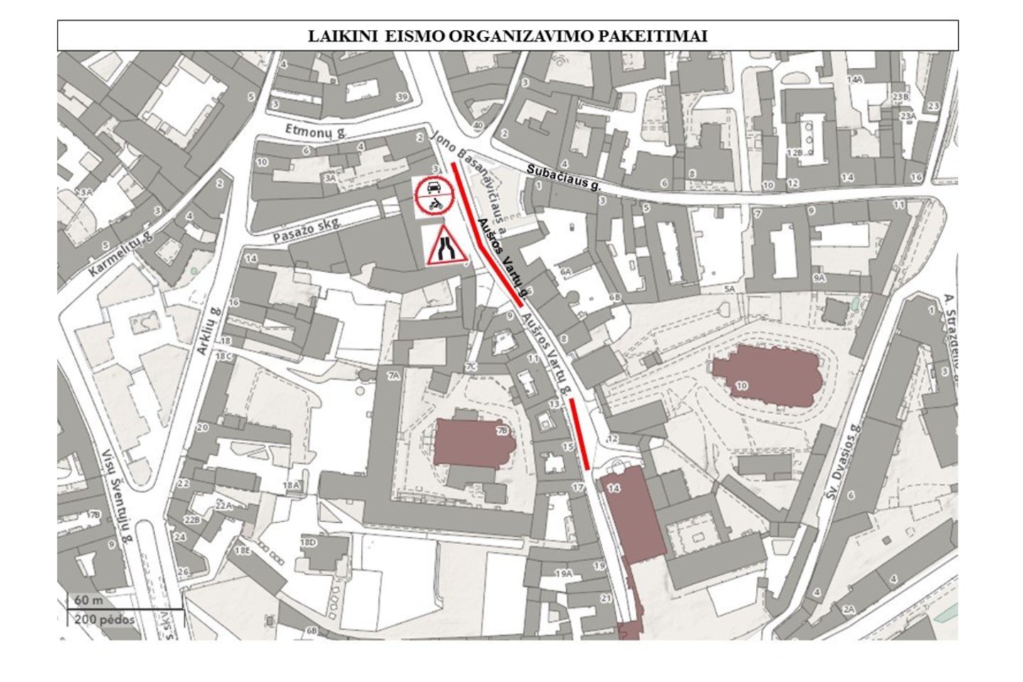 Nuo gegužės 22 d. iki kitų metų spalio 1 d. draudžiamas transporto eismas Aušros Vartų gatvės dalyje tarp Subačiaus ir Bazilijonų gatvių, išskyrus aptarnaujantį transportą, ir gatvės važiuojamoji dalis bus susiaurinta iki 3 metrų.
