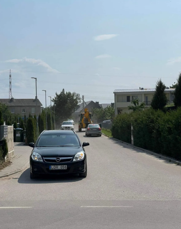 „Per duobes ir bordiūrus, per pora savaičių, bent 10 automobilių prasikirto padangas. Buvo pravažiavęs traktorius bent 2 kartus, sausai prabraukė duobes, kelis kartus atvažiavo sulaistyti gatvę, bet kaip toks eismas, tai tos duobės vėl tą pačią dieną susidaro.