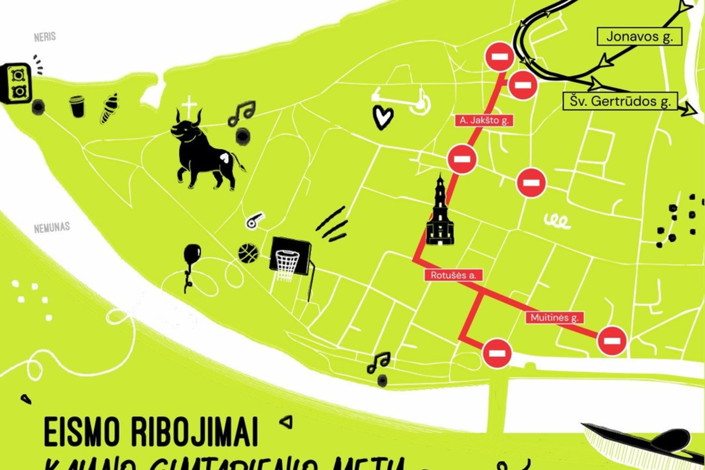 „Laikini eismo ribojimai Kauno gimtadienio metu. Nuo gegužės 23 d. 12.00 val. iki gegužės 25 d. 23.00 val. senamiestyje keičiasi eismo tvarka. Kviečiame į šventę atvykti pėsčiomis arba viešuoju transportu – tai padės išvengti spūsčių ir kitų nepatogumų“, – pirmadienį pranešė Kauno miesto savivaldybė.