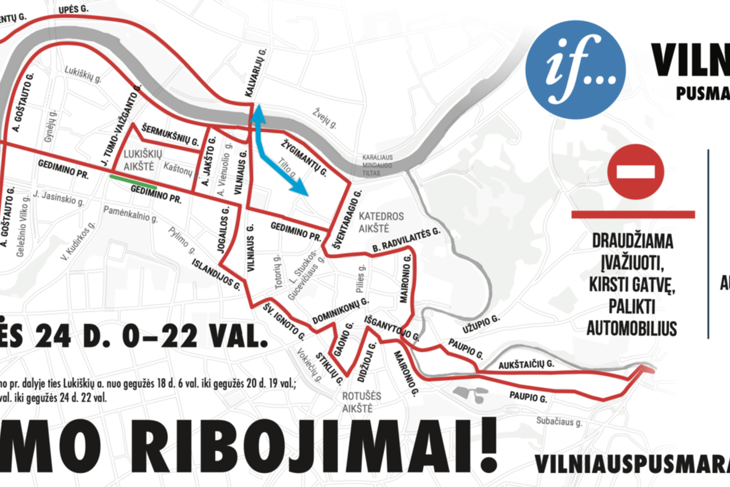 Tai reiškia, kad L. Stuokos-Gucevičiaus, Šventaragio ir Barboros Radvilaitės gatvėse draudžiamas automobilių stovėjimas, o taip pat bus ribojamas transporto eismas T. Vrublevskio, Šventaragio, Barboros Radvilaitės gatvėse bei Gedimino prospekto atkarpoje nuo Šventaragio iki Vilniaus gatvės.