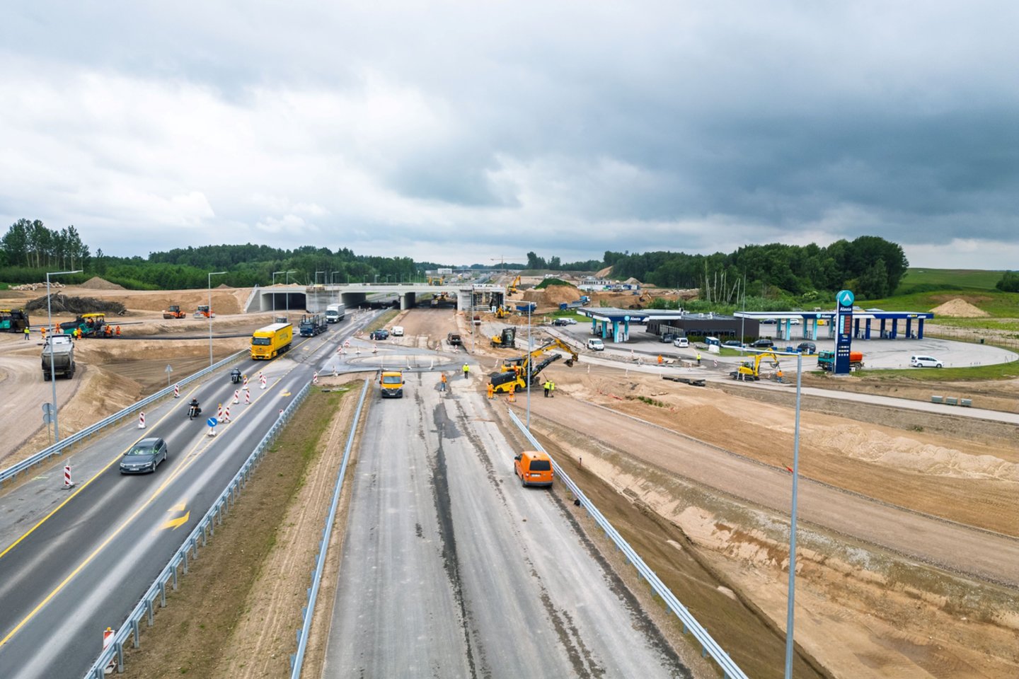 Nuo darbų pradžios praėjusiais metais, iki šiol jau nutiesta apie 75 proc. pagrindinio keturių eismo juostų magistralinio kelio, įrengta 60 proc. jungiamųjų kelių, o žiedinių sankryžų įrengimas pasiekė 50 proc. Taip pat atlikta daugiau nei pusė kitų infrastruktūros sprendinių – nuo lietaus nuotekų tinklų iki techninių inžinerinių sistemų.