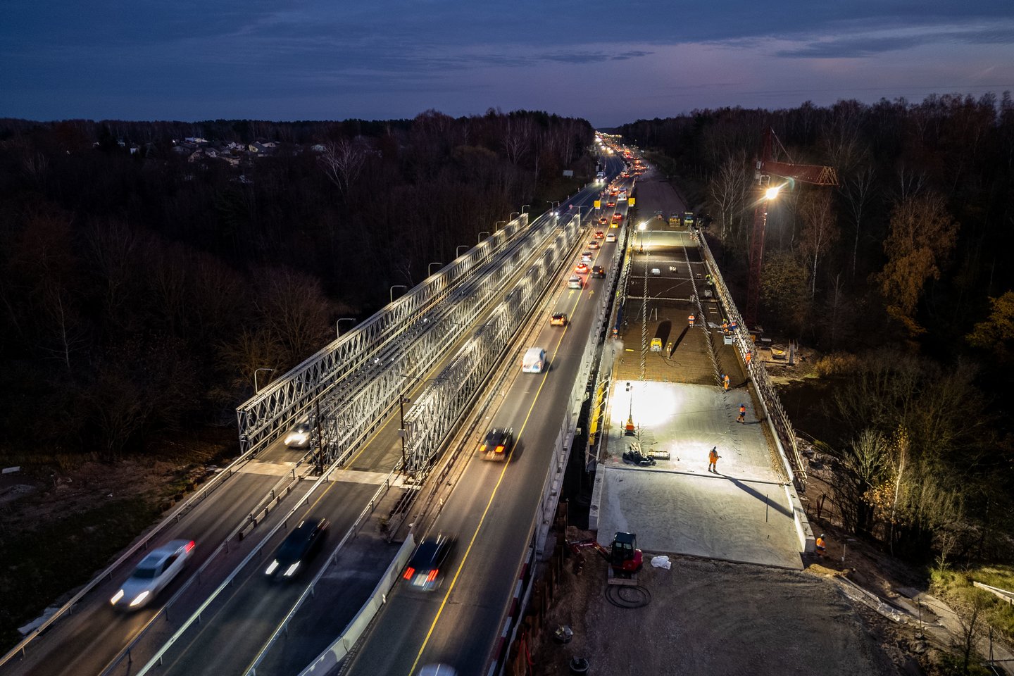 „Tai reiškia, kad tuo pat metu, kai eismas toliau vyksta laikinaisiais tiltais, dideliame aukštyje nuo žemės yra atliekami senųjų tilto dalių griovimo darbai ir statomas naujas tiltas. Jį pastačius, laikinus tiltus vėl išmontuosime. Tai yra visapusiškai ekonomiškas sprendimas, kurio dėka gyventojams nereikia vargti spūstyse, nes eismas rekonstrukcijos metu juda gana sklandžiai. O ir mes galime vykdyti darbus kur kas efektyviau“, – apibendrina E.Grinaveckas.