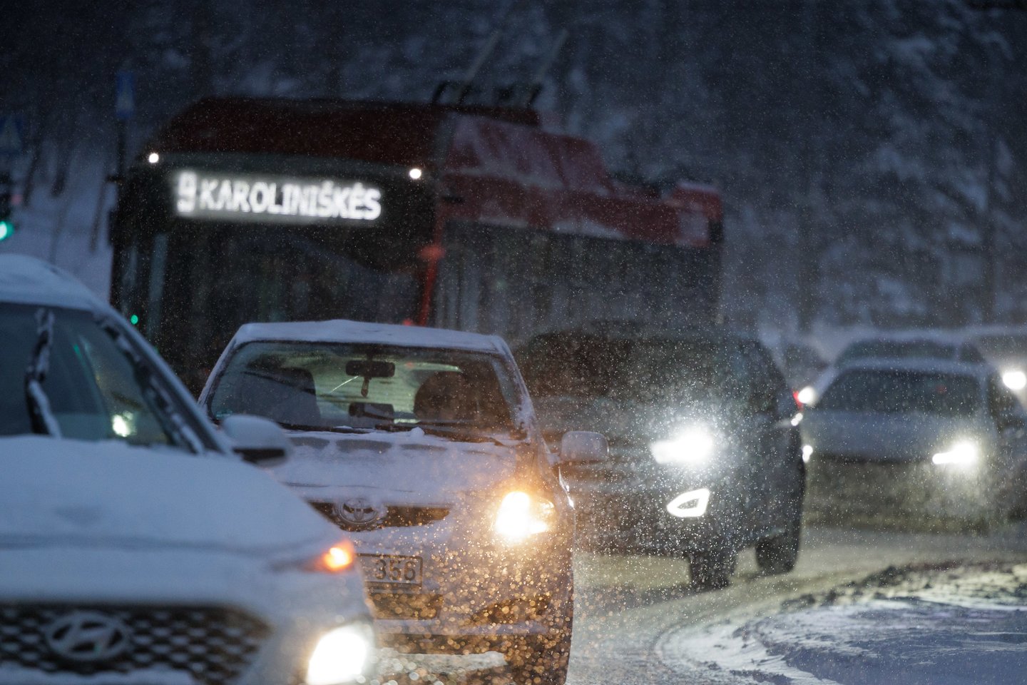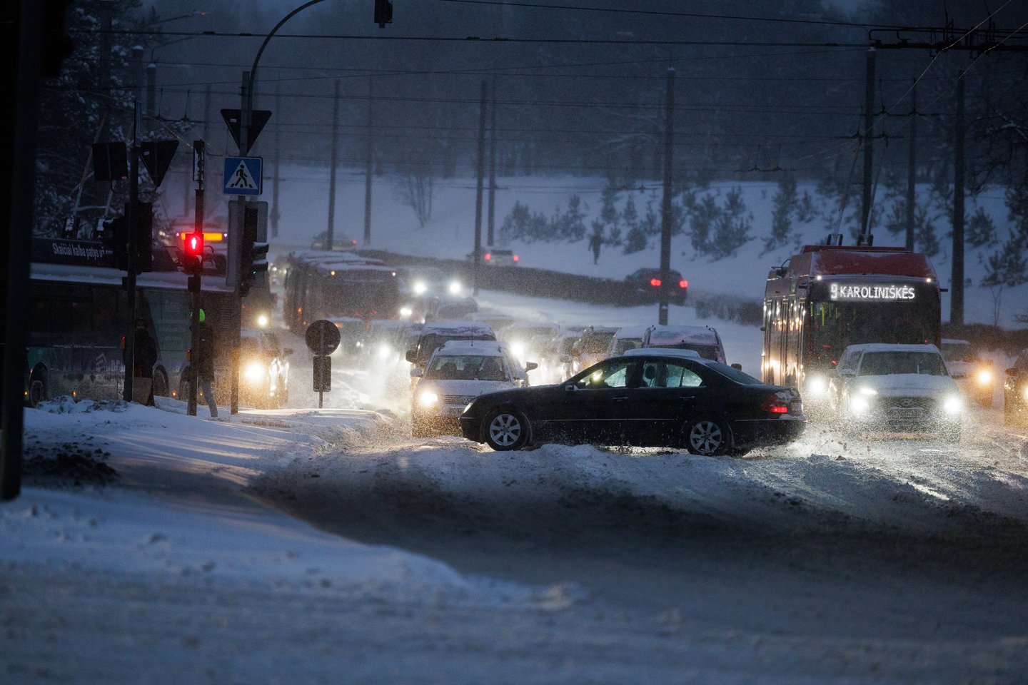 Visą dieną intensyviai besitęsiantis snygis paralyžiavo eismą Lietuvoje. Vilniuje seniai matytos spūstys, regionuose – sudėtingos eismo sąlygos, o sniegas trauktis nė nežada. Pažvelkite Lrytas fotografo V. Skaraičio kadruose – kaip iš arti atrodo vakaras Vilniuje.