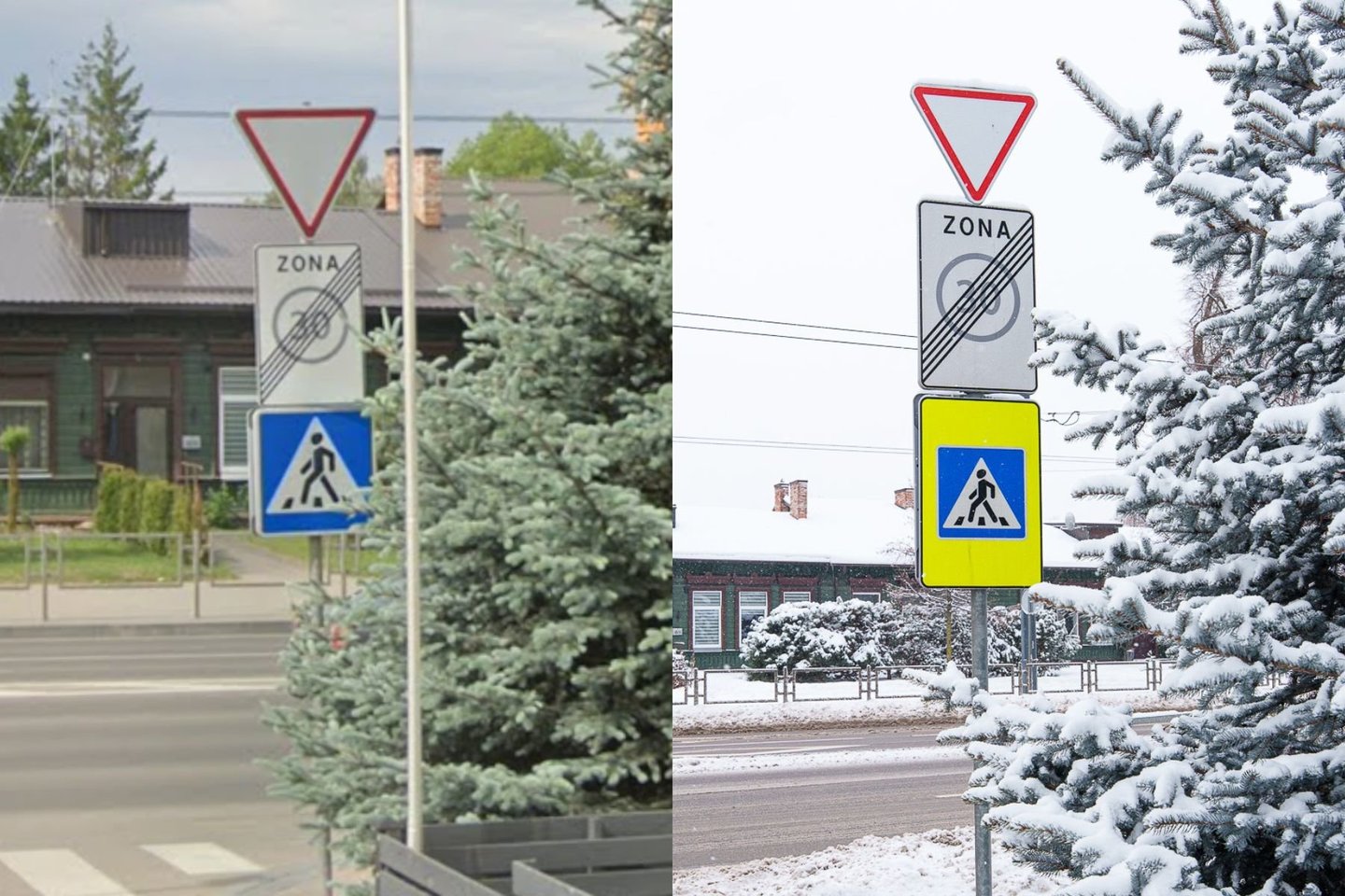 Šie pateikti paaiškinimai atitinka portalo nustatytas faktines aplinkybes – kaip matoma užfiksuotose nuotraukose, dalis kelio ženklų yra maždaug 4–6 centimetrais mažesni, kai kurie ženklai dar mažesni.