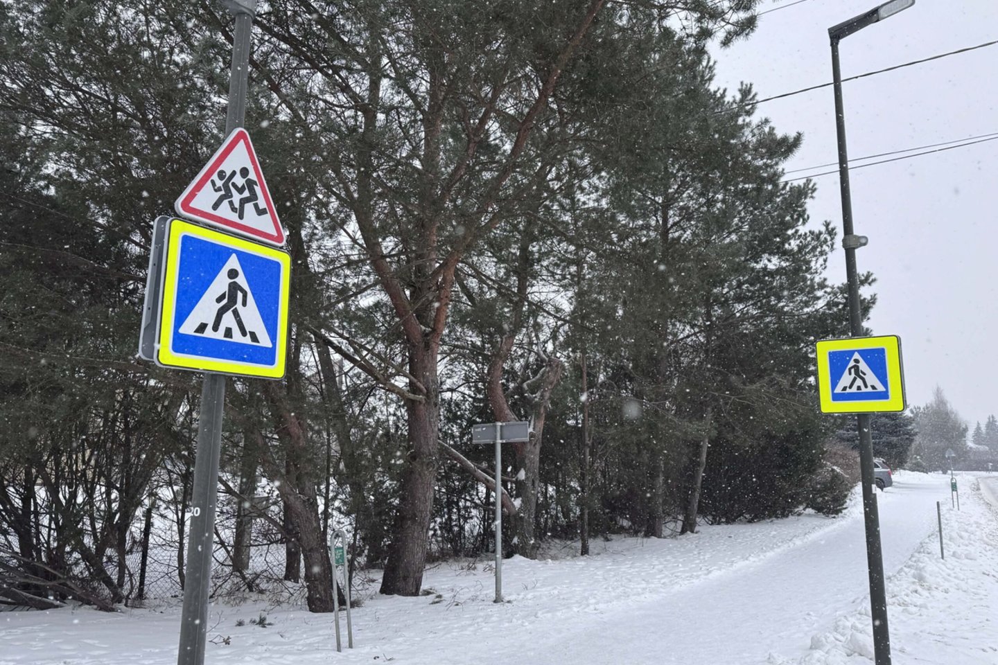 Kelionę pradėjome Juozapavičiaus prospektu – čia portalo žurnalistai užfiksavo apie 160 pėsčiųjų perėjų ženklų, absoliuti dauguma šių ženklų įrengti ryškiaspalviuose skyduose. Skaičiavome kelio ženklus iš abiejų pusių, taip pat kelio ženklus, esančius šalutinėse gatvėse.