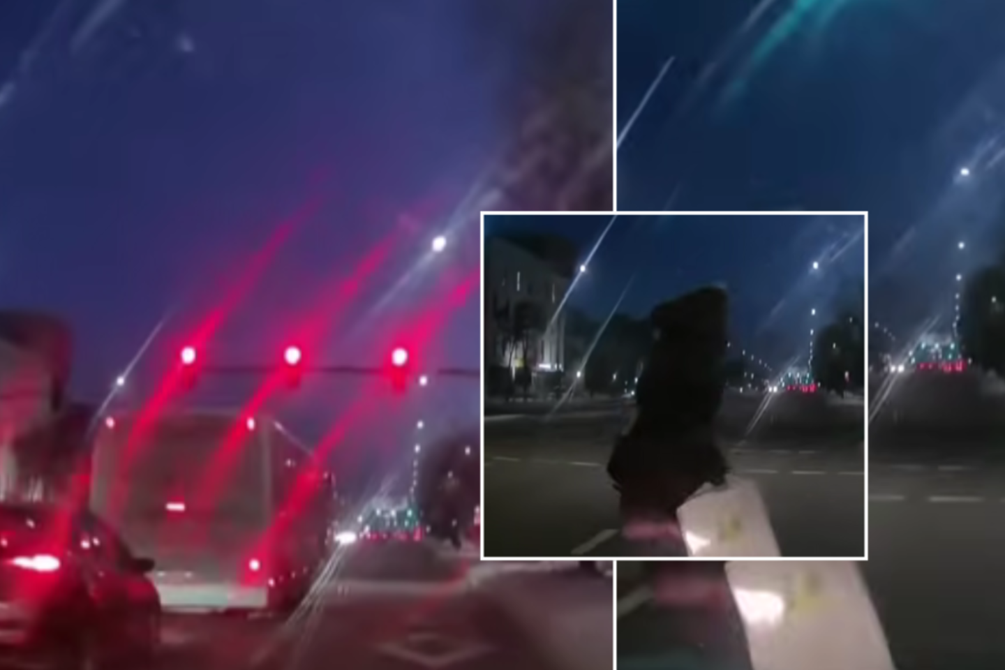 Jo užfiksuotoje vaizdo medžiagoje matyti, kaip Savanorių prospekte, netoli reguliuojamos pėsčiųjų perėjos, per gatvę bėga moteris. Laimei, prie šviesoforo artėjantis vairuotojas spėja sustabdyti, nors jam jau degė žalias šviesoforo signalas.
