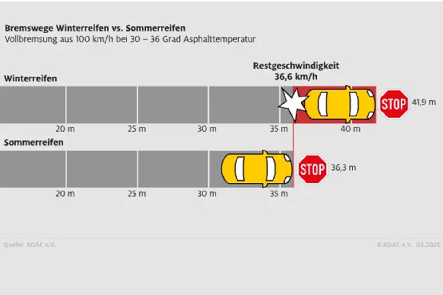 Nepriklausomi Vokietijos automobilių klubo ADAC bandymai parodė, kad ant sauso asfalto važiuojant 100 km/h greičiu žieminių padangų stabdymo kelias gali būti net 16 metrų ilgesnis nei vasarinių padangų.