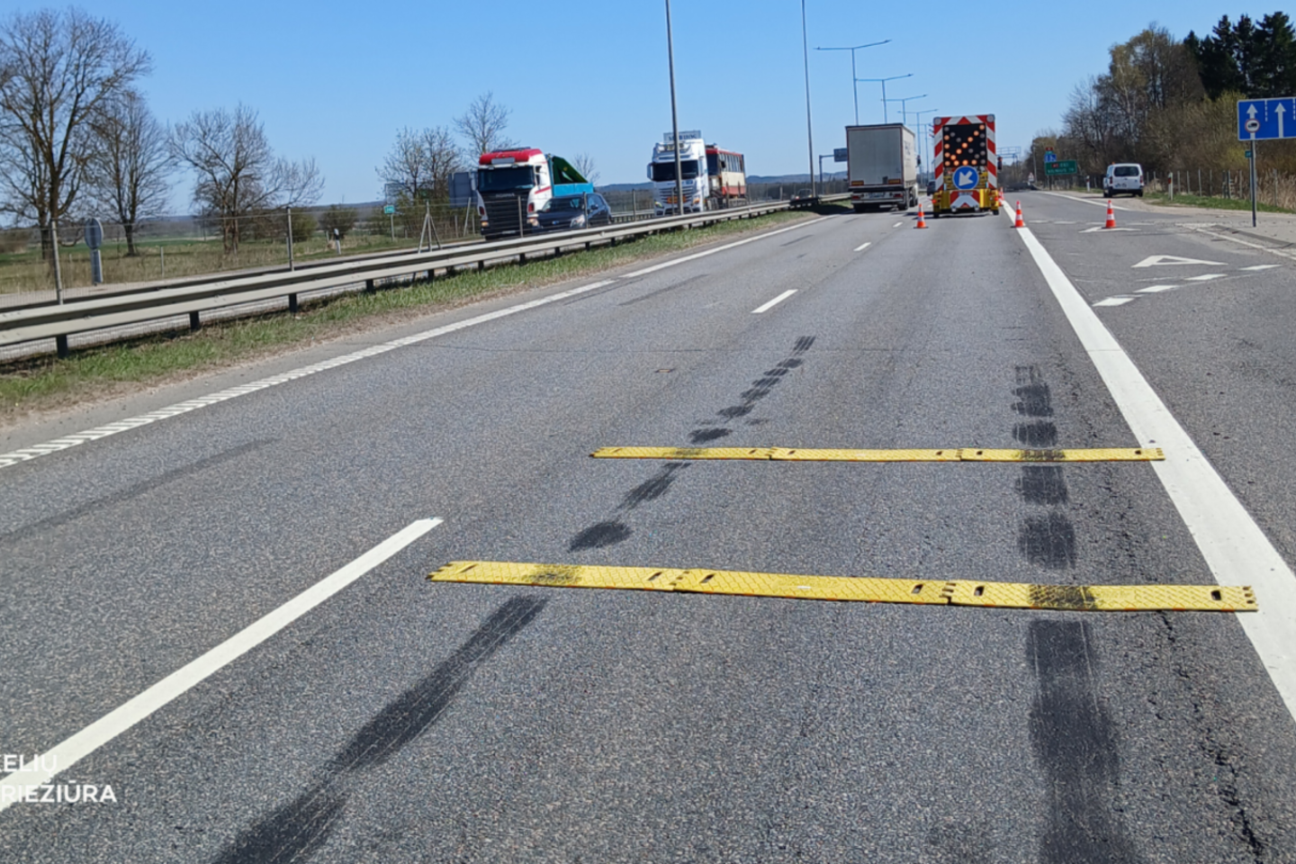 Kelio darbų vietoje buvo įrengtas ir smūgio slopintuvas – priemonė, skirta sušvelninti susidūrimo pasekmes.