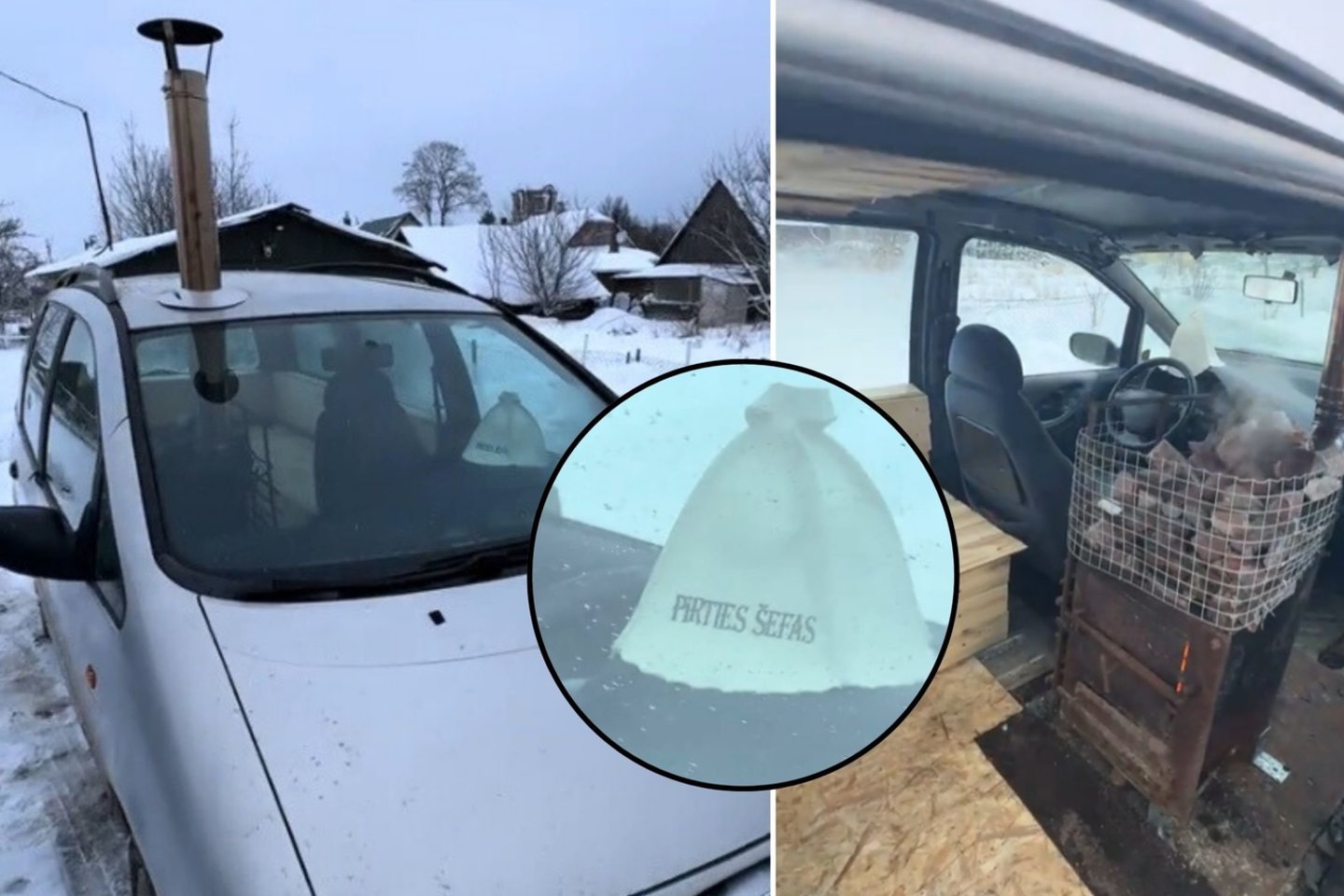 Tiesa, linkėjimus su tokiu įrenginiu siuntė ir kaimynas latvis, nufotografavęs savo automobilį-pirtį.