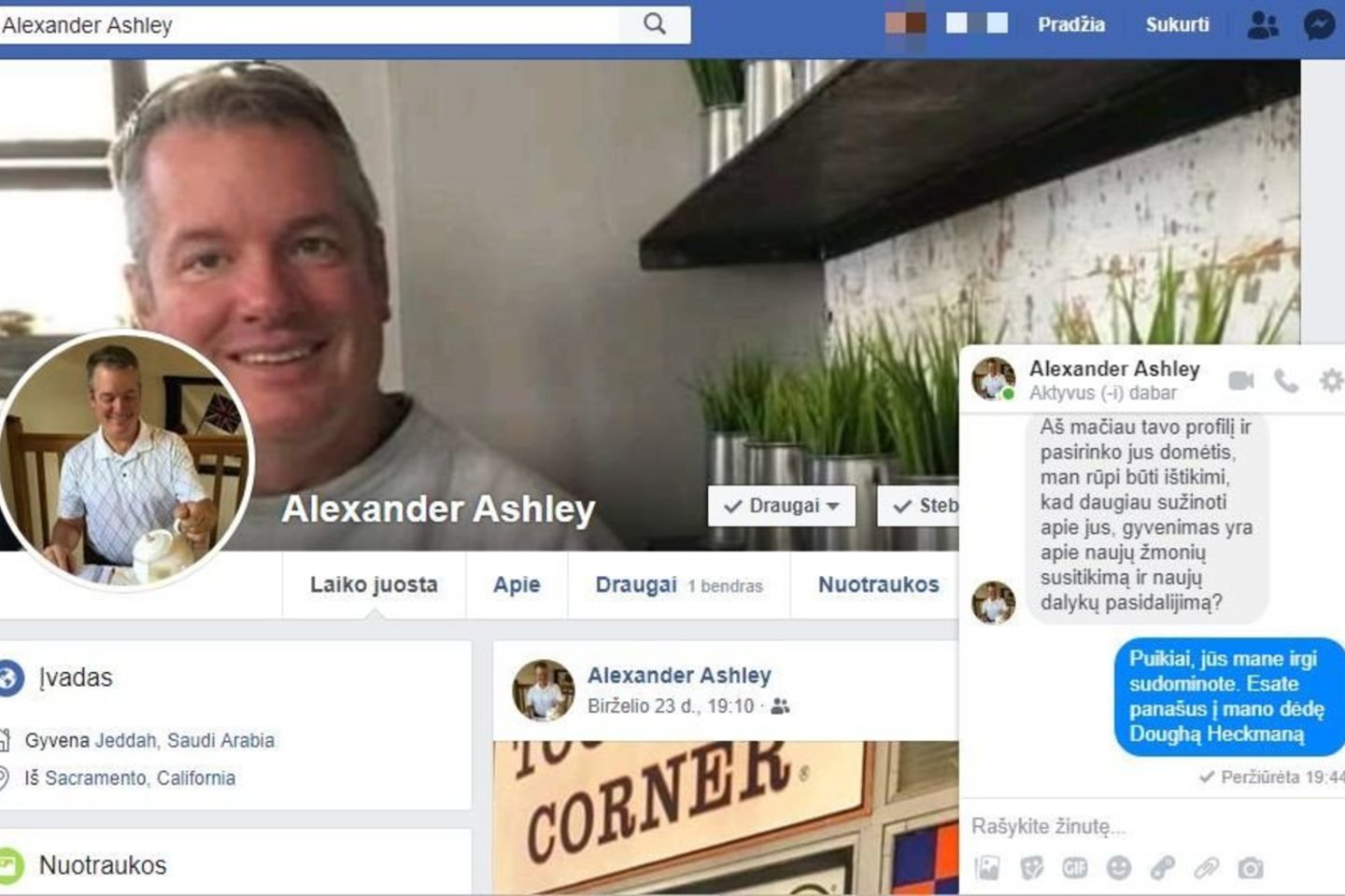 Tad kai į draugus pasiprašė toks Alexanderis Ashley, su geraširdiško vidutinio amžiaus amerikiečio veidu profilio nuotraukoje, nurodantis, kad yra iš Kalifornijos, Sakramento, bet gyvenantis Saudo Arabijoje, Džedoje, padariau, ko niekad nedarydavau – patvirtinau užklausą.