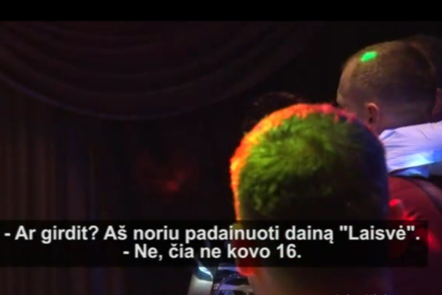 Viena mergina iš įsismaginusios publikos čiupo iš muzikanto mikrofoną ir pareiškė, kad nori padainuoti „Laisvę“. Bet kažkas iš salės papriekaištavo, kad čia ne kovo 16-oji...