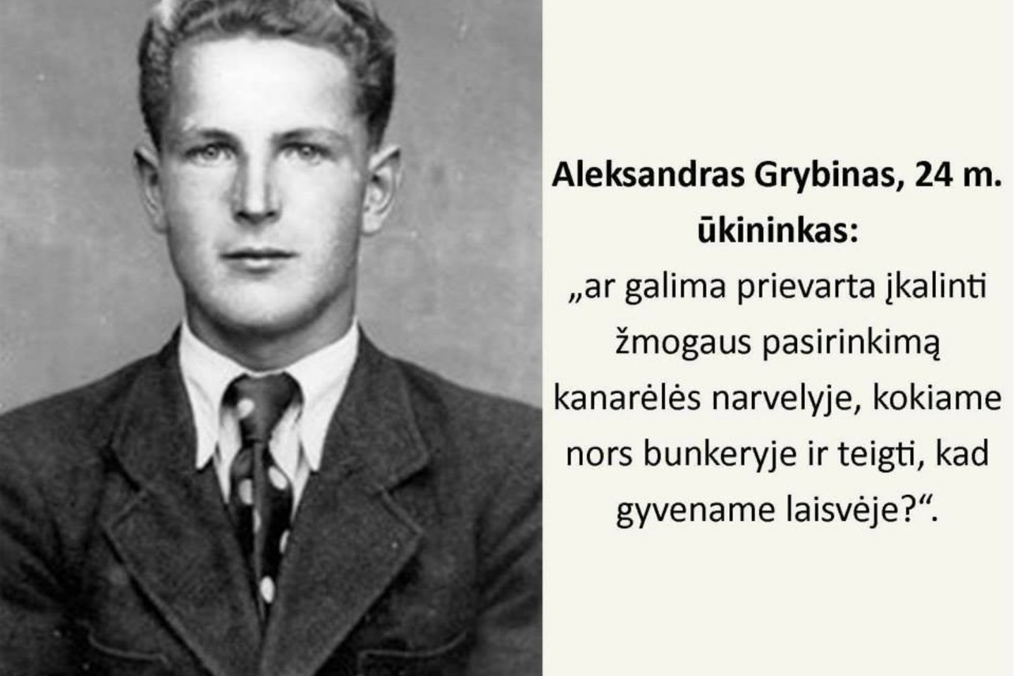 Tai – garsiausių Lietuvos partizanų nuotraukų rinkinys, o prie jų – išgalvotos priežastys, kodėl šie už Lietuvos nepriklausomybę žuvę vyrai būtų galėję atsisakyti ginti Tėvynę.
