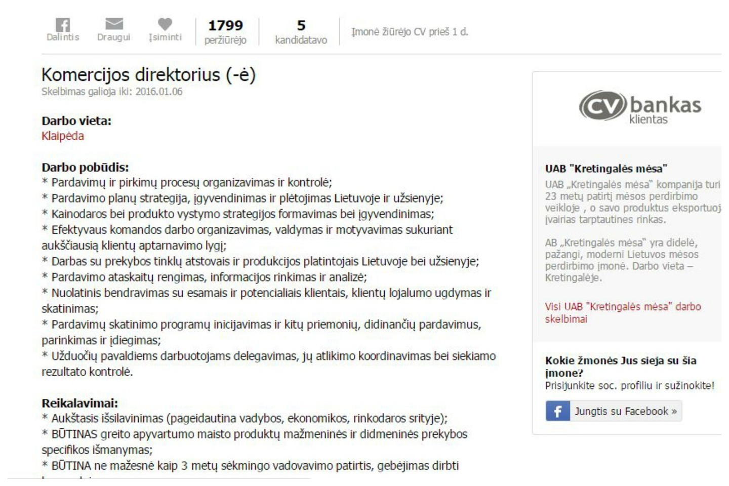 Darbo pasiūlymą paskelbusios UAB „Kretingalės mėsa“ atstovė teigė, jog toks atlyginimas skelbime nurodytas tik dėl internetinės svetainės reikalavimų.