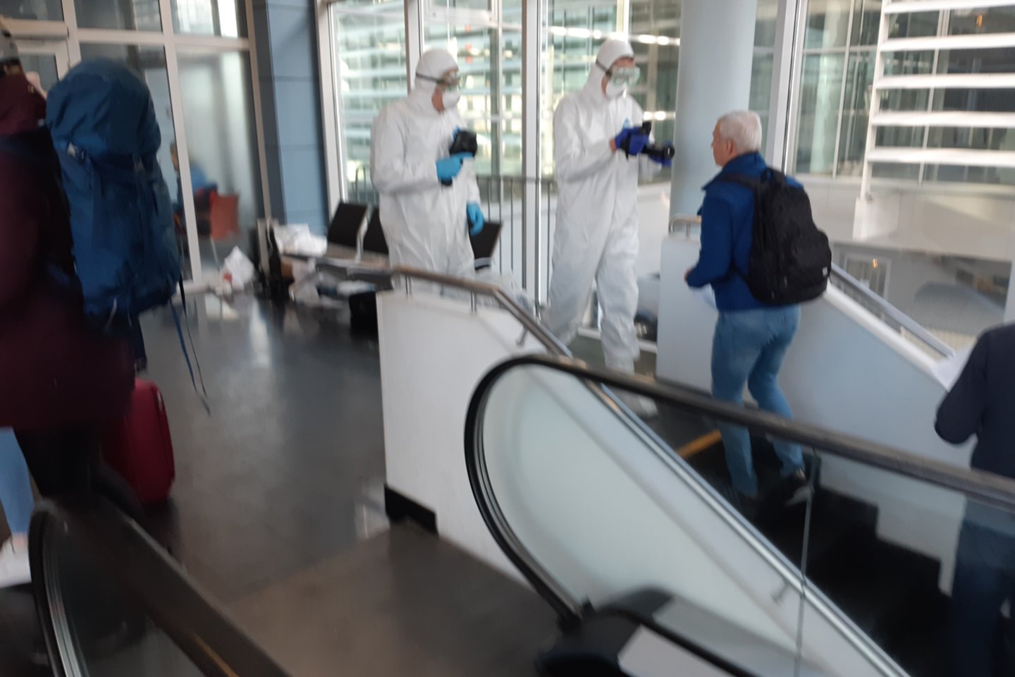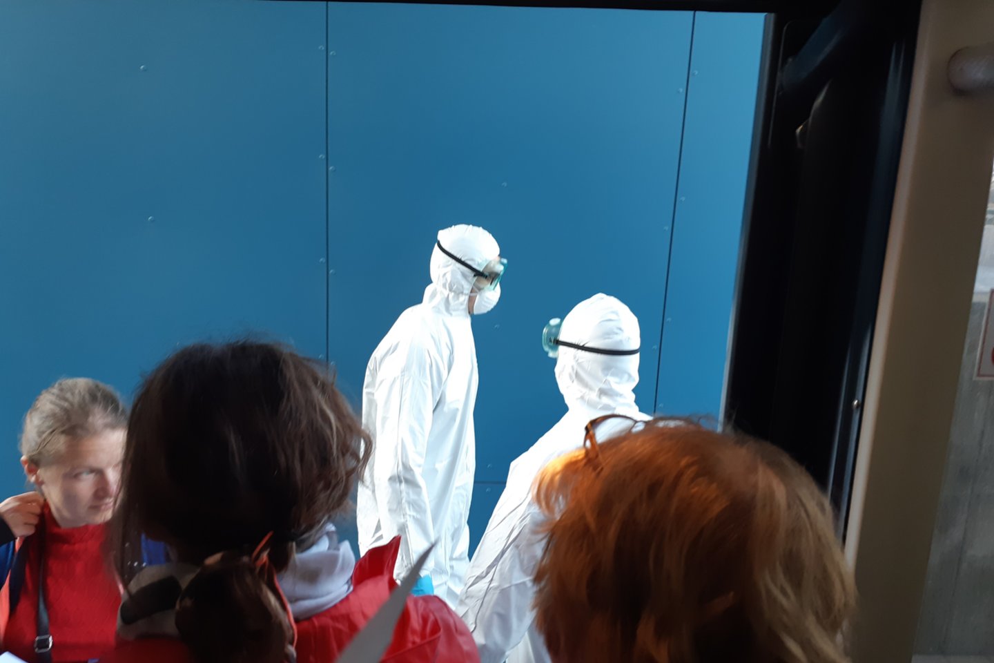 Šis autobusas turi visus nuvežti iki oro uosto, o tada žmonės kviečiami dar kartą užpildyti anketą ir pateikti savo duomenis.