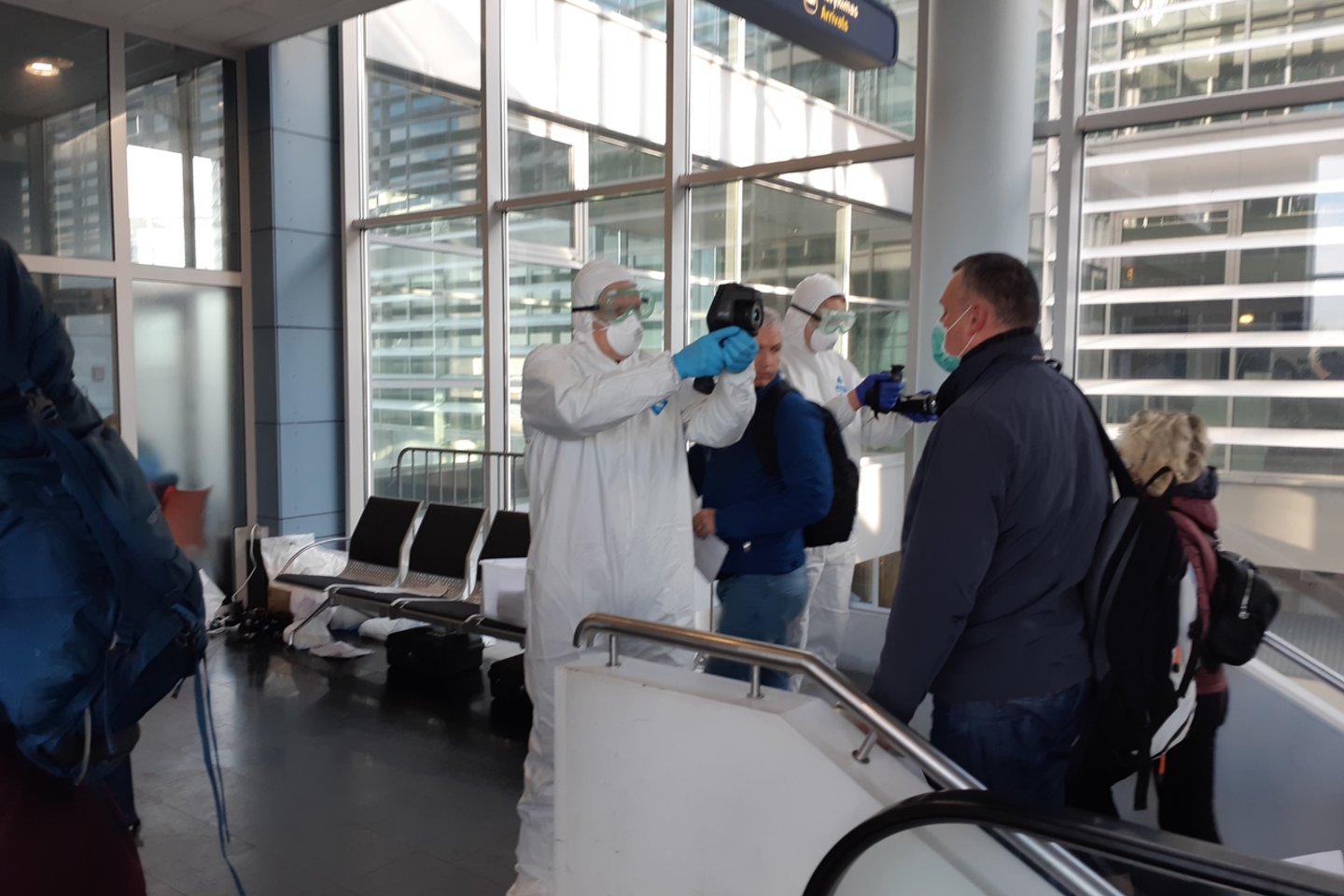 Pagaliau ateina eilė kiekvienam sugrįžusiam turistui pasitikrinti kūno temperatūrą.
