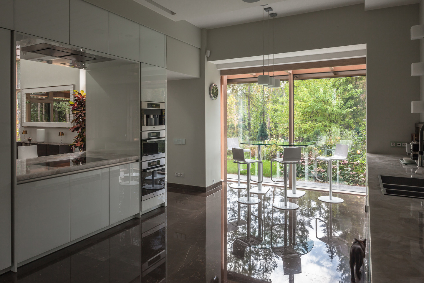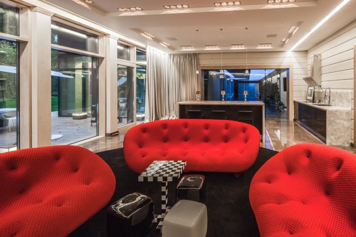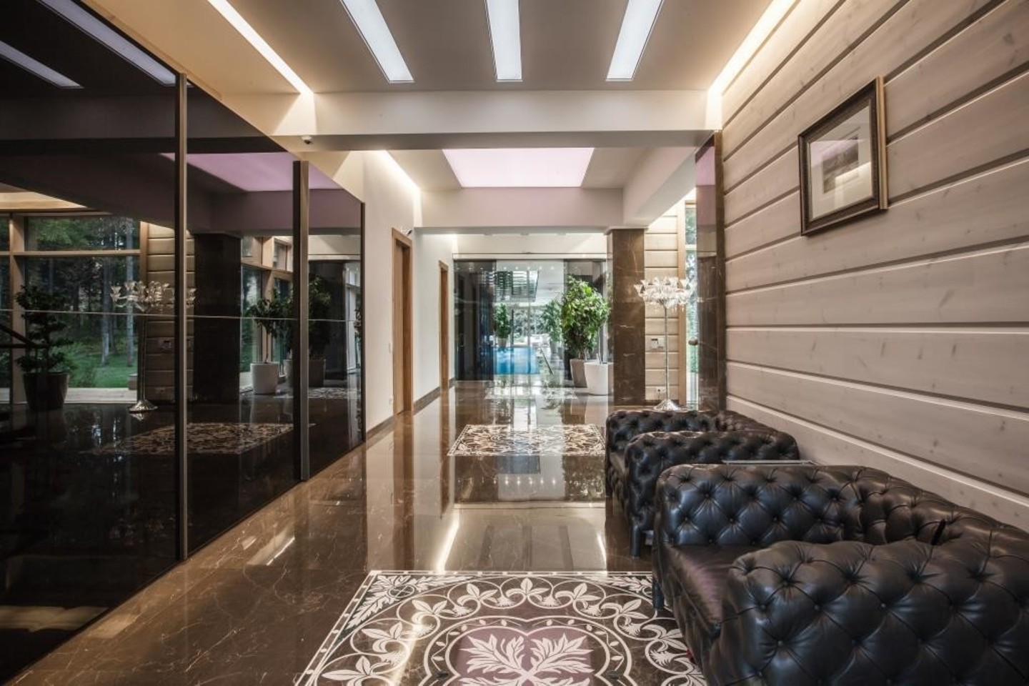 Yra ir eklektikos, vadinamųjų prestižinių detalių, kurių pageidavo klientas. Pavyzdžiui, švytintys stalai su kvarciniais akmenimis, kurie apšvietus iš apačios švyti balta, rausva spalvomis. Šviečiančios vitrinos, kurias vienu mygtuko paspaudimu galima išjungti, padaryti matinėmis arba skaidraus stiklo. Tai įdomu, prabangu, neįprasta.