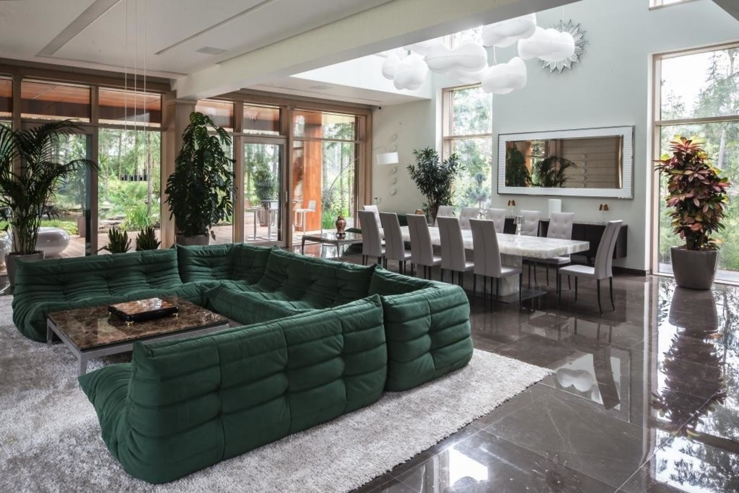 Visas kompleksas harmoningai siejasi tarpusavyje tiek architektūriniais, tiek interjero sprendimais.