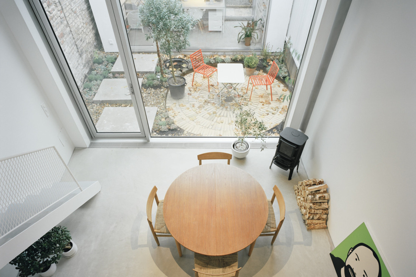 Architektų tikslas – daug priemonių nereikalaujantis projektas, kai minimaliomis pastangomis sukuriama įdomi erdvė. Interjere – nesibaigianti seka uždarų ir siaurų bei itin atvirų erdvių, nišų. Pro namo langus atsiveria kruopščiai įrėminti vietovės vaizdai, šalia stūksantys kaimyniniai namai, o viršuje – visa aprėpiantis dangus.