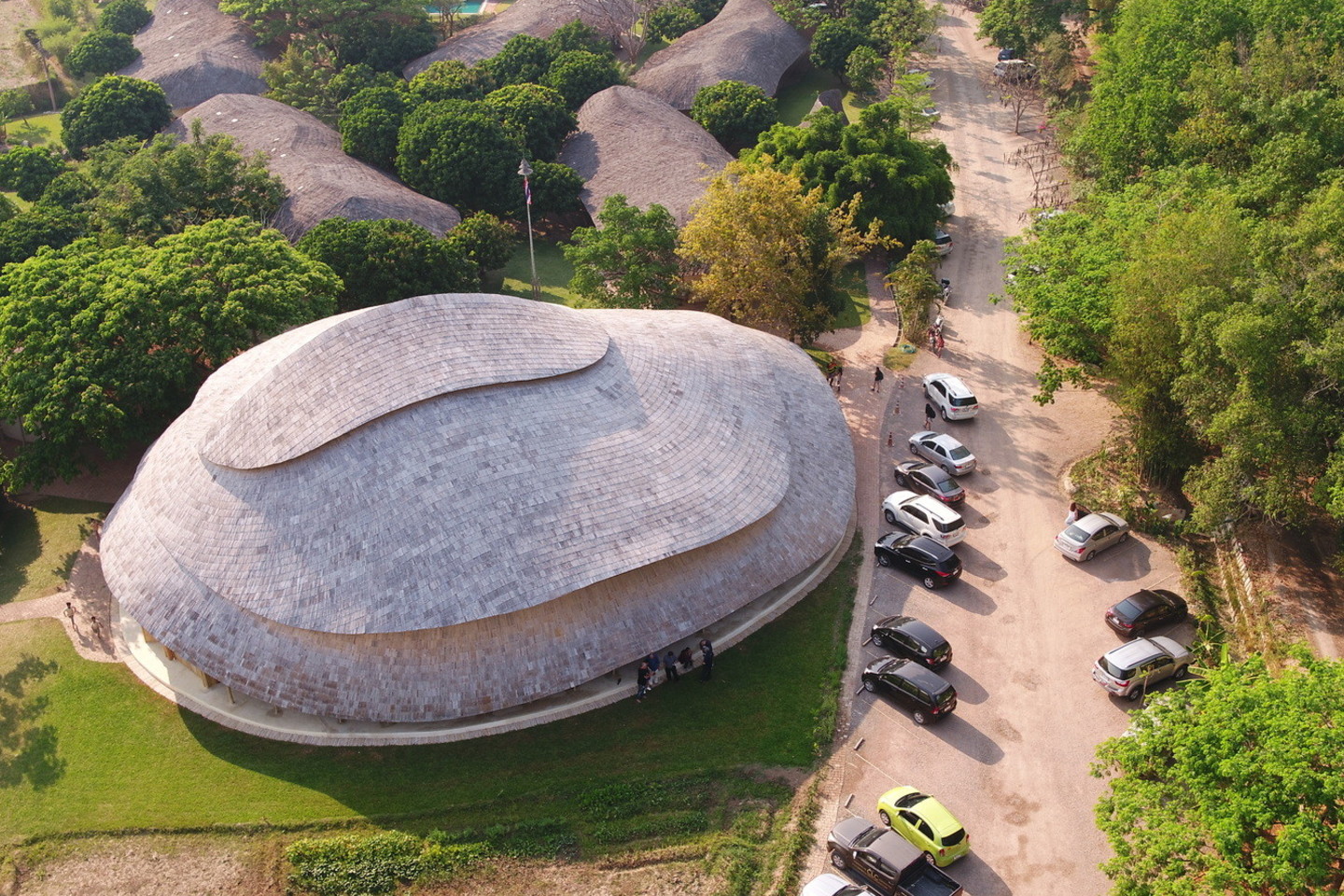 Prie ryžių laukų įkurtos mokyklos sporto salė suręsta kone ištisai iš bambukų. Architektų studija tokį sprendimą pasirinko mėgindama atliepti mokyklos diegiamą aplinkai draugišką gyvenseną.