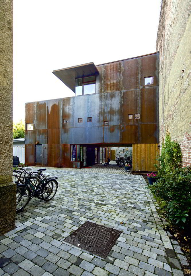 Vietos architektai „Jarmund/Vigsnæs Architects“ namus šeimai, kurioje auga ir paaugliai, ir mažesnio amžiaus atžalos, pastatė visai greta tos vietos, kur jie gyveno anksčiau. Netgi buvęs galinis kiemas tapo naujojo šeimos būsto dalimi.