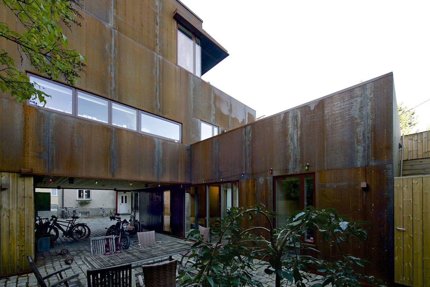 Per tris aukštus iškilęs L formos namas supa vidinį sodą, kuriame atsipūsti susirenka visa šeima. Antrame ir trečiame aukšte įrengtose terasose yra vietos norint prisėsti vakarienės po atviru dangumi ar prie ugniakuro.