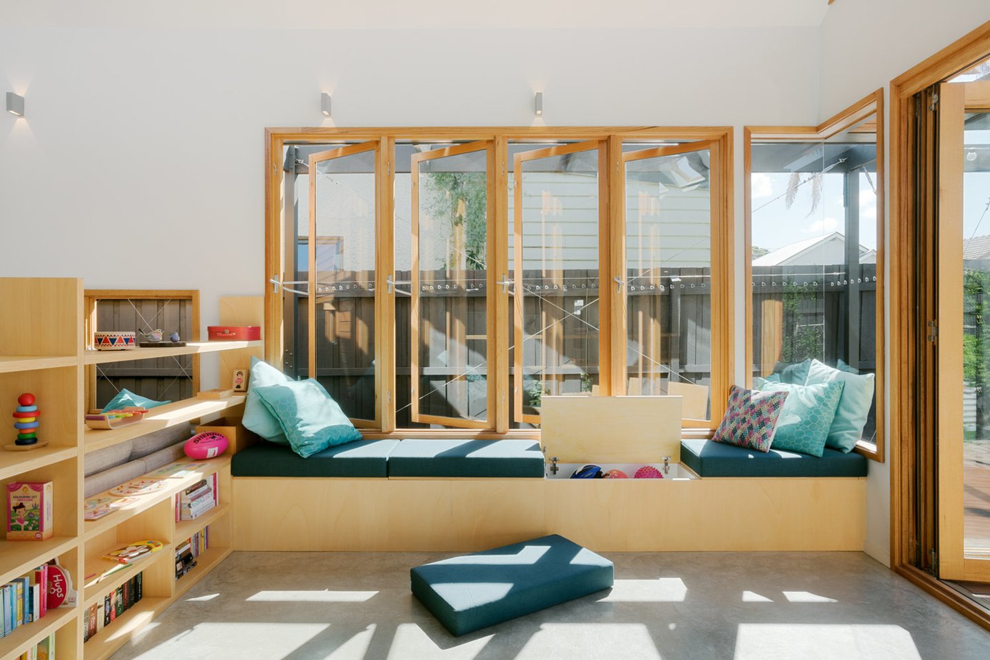 Didelės palangės, ant kurių galima sėdėti, skirtos atsipalaiduoti, skaityti knygą, žavėtis žydinčia magnolija arba sodu. Magnolją galima stebėti ir per aukštą kampą su langu. Pro lubas patenka pagrindinis šviesos srautas, pro jas namas vėdinamas.