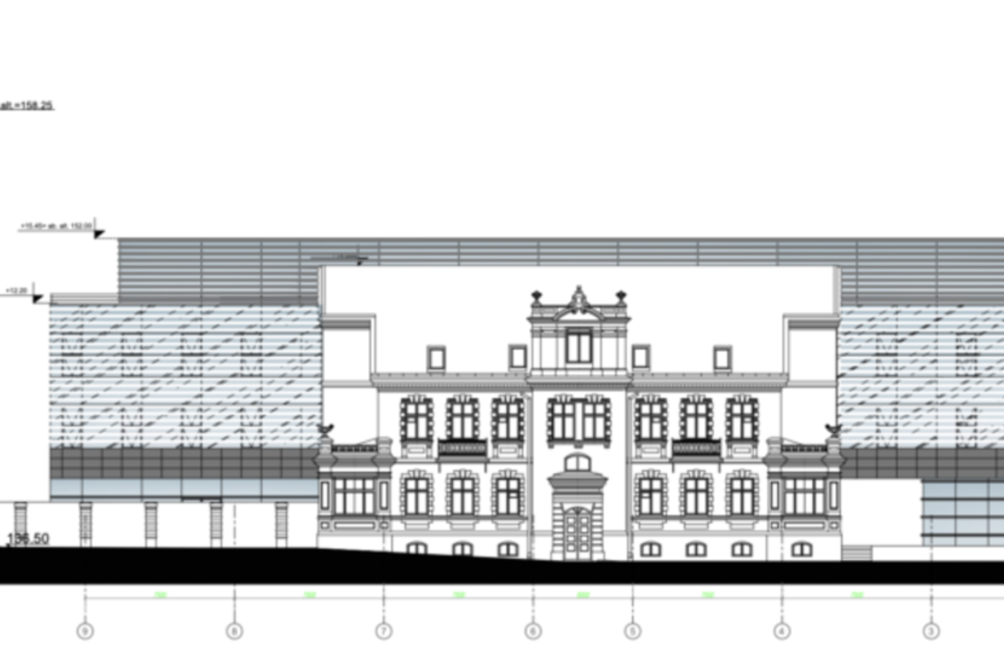 Pastarasis pastatas rekonstrukcijos metu bus paaukštintas nuo triaukščio iki keturaukščio pastato.