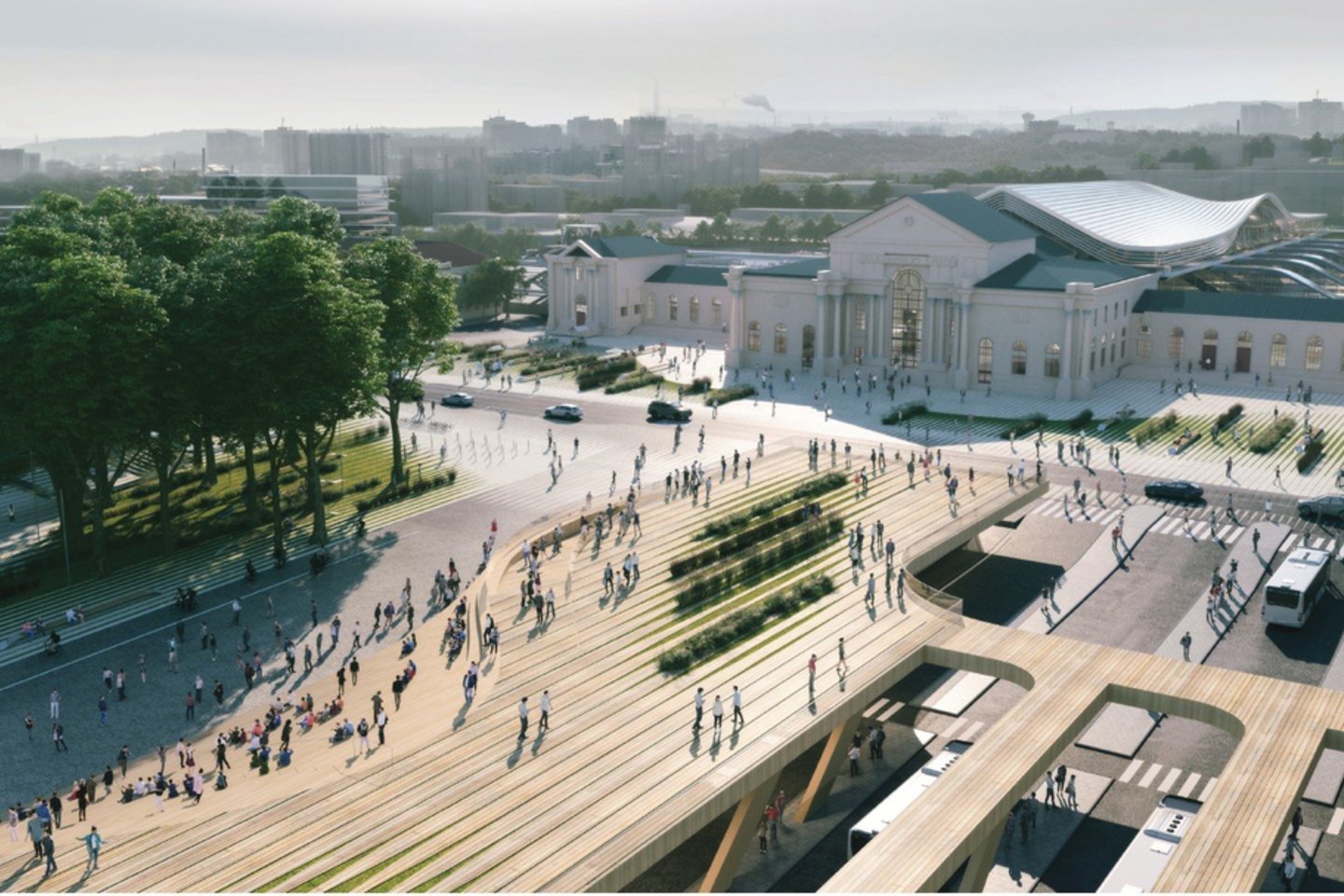Projektas sumanytas taip, kad atrodytų, kaip natūralus kraštovaizdis, kuriame telpa ir atnaujintas viešojo transporto terminalas. Aikštėje suplanuotas lauko amfiteatras bei nuožulni rampa, vedanti į viešąją terasą ant pastato stogo. Tai – šiuolaikiškas XXI amžiaus transporto mazgas, kuriame bus įrengtos aukščiausios kokybės viešosios erdvės, skirtos miesto gyventojų poilsiui ir patogiam kasdieniam naudojimui“, – sakė L. Lombardi.