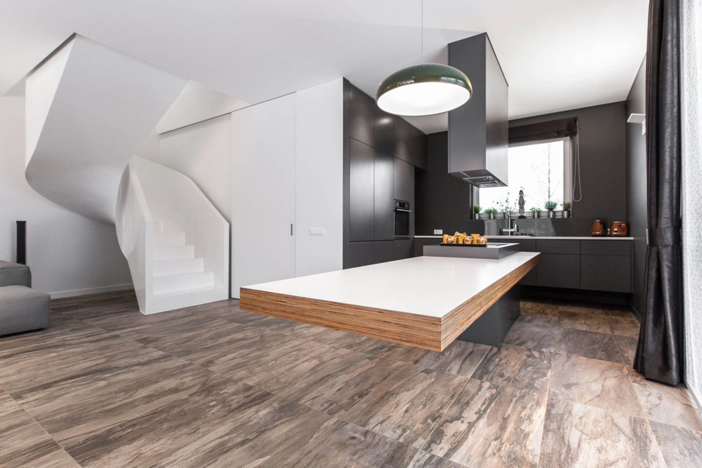 Tik įėjus į namus sukuriamas neperkrauto ir erdvaus interjero jausmas. Pirmo aukšto erdves apjungia malonios faktūros akmens masės plytelės, o privačias miegamojo erdves sušildo ąžuolinis parketas.