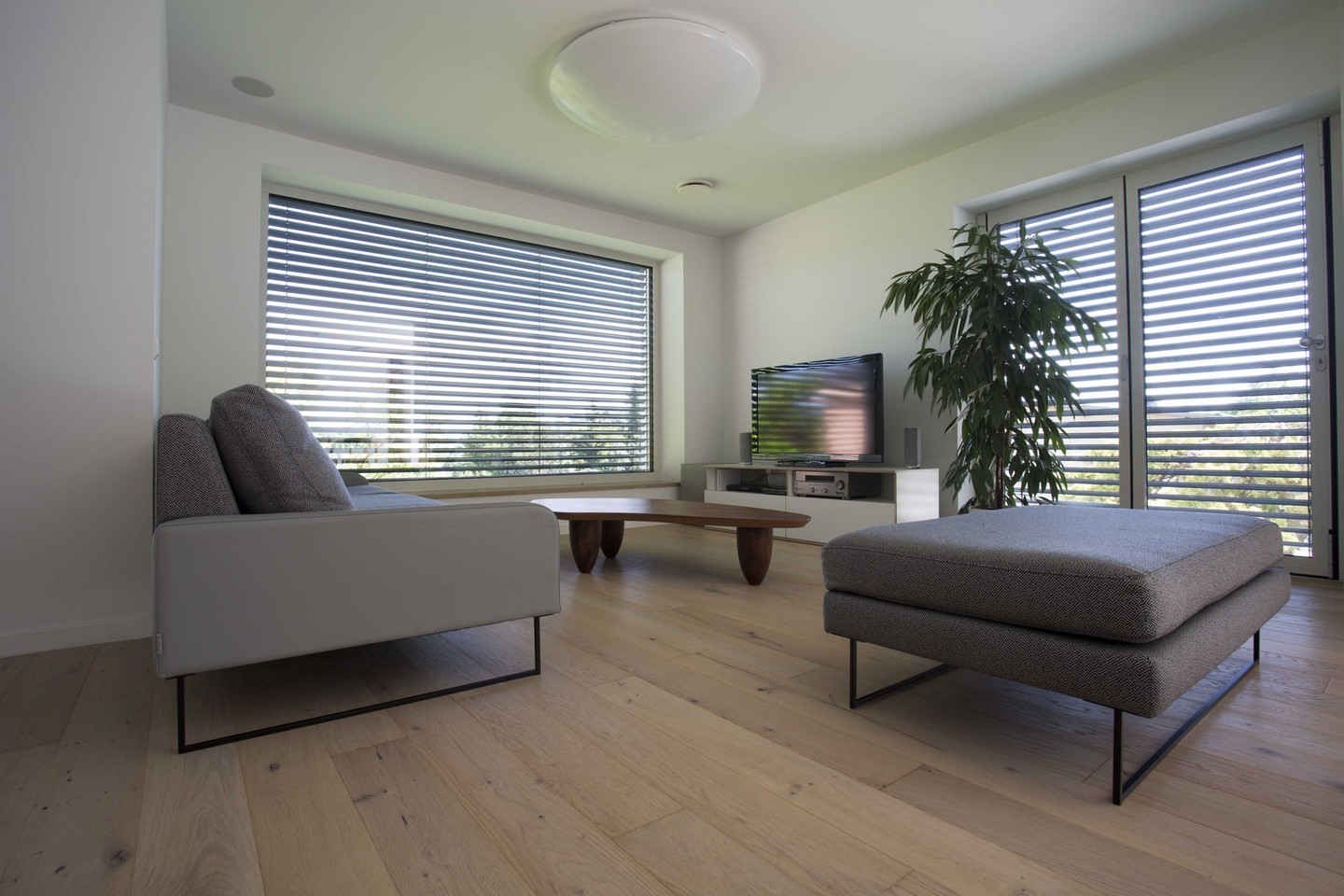 Modernistinę šeštojo dešimtmečio dvasią čia pagyvino įvairūs tiek Liuksemburge, tiek Lietuvoje pirkti baldai, dalis jų – vintažiniai arba projektuoti pačios architektės. „Kartu su klientais skyriau nemažai dėmesio medžiagoms parinkti, nes šeimininkai – žmonės, nemėgstantys tarnauti namams, tad čia kuriant interjerą naudotos natūralios ir tvirtos medžiagos, tokios kaip mediena, akmuo, marmuras“, – pasakojo architektė.