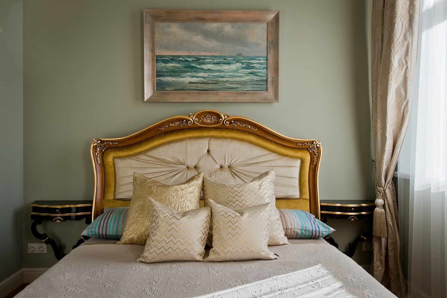 „Kadangi žinojome, jog šiuose namuose įsikurs pora, nutarėme plačiai atverti miegamąjį – kai gyveni dviese, smagu iš lovos mėgautis viso buto vaizdu, o jei laukiama svečių, elegantiškas dvivėres duris galima priverti, – pasakojo Vida. – Tai klasikinis, su Holivudo glamūro prieskoniu sukurtas interjeras, jis šviesus ir lengvas. Jaunų žmonių namuose sąmoningai vengėme sunkesnio vaizdo, nenaudojome daug medienos – to, kas daugeliui asocijuojasi su klasika.“